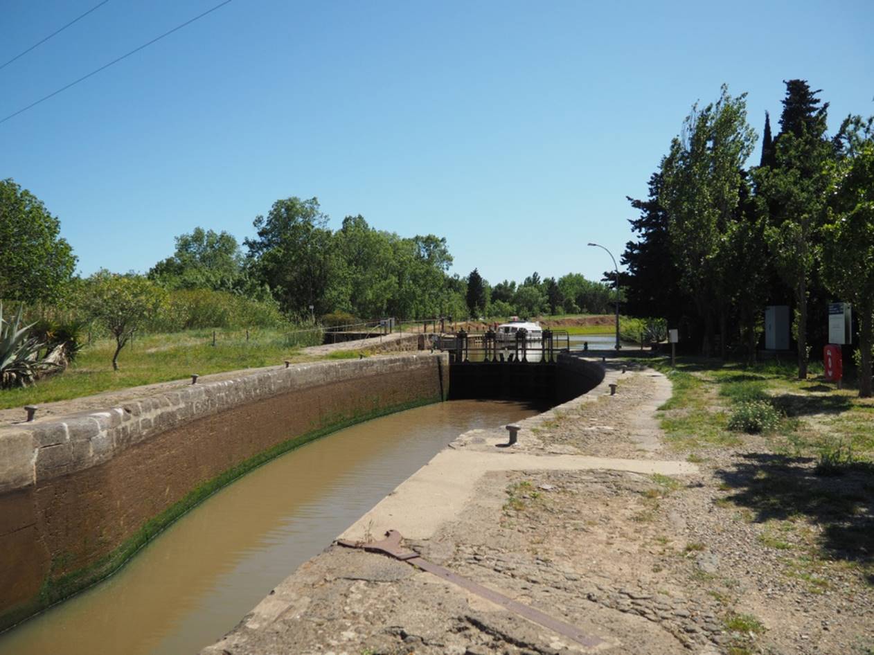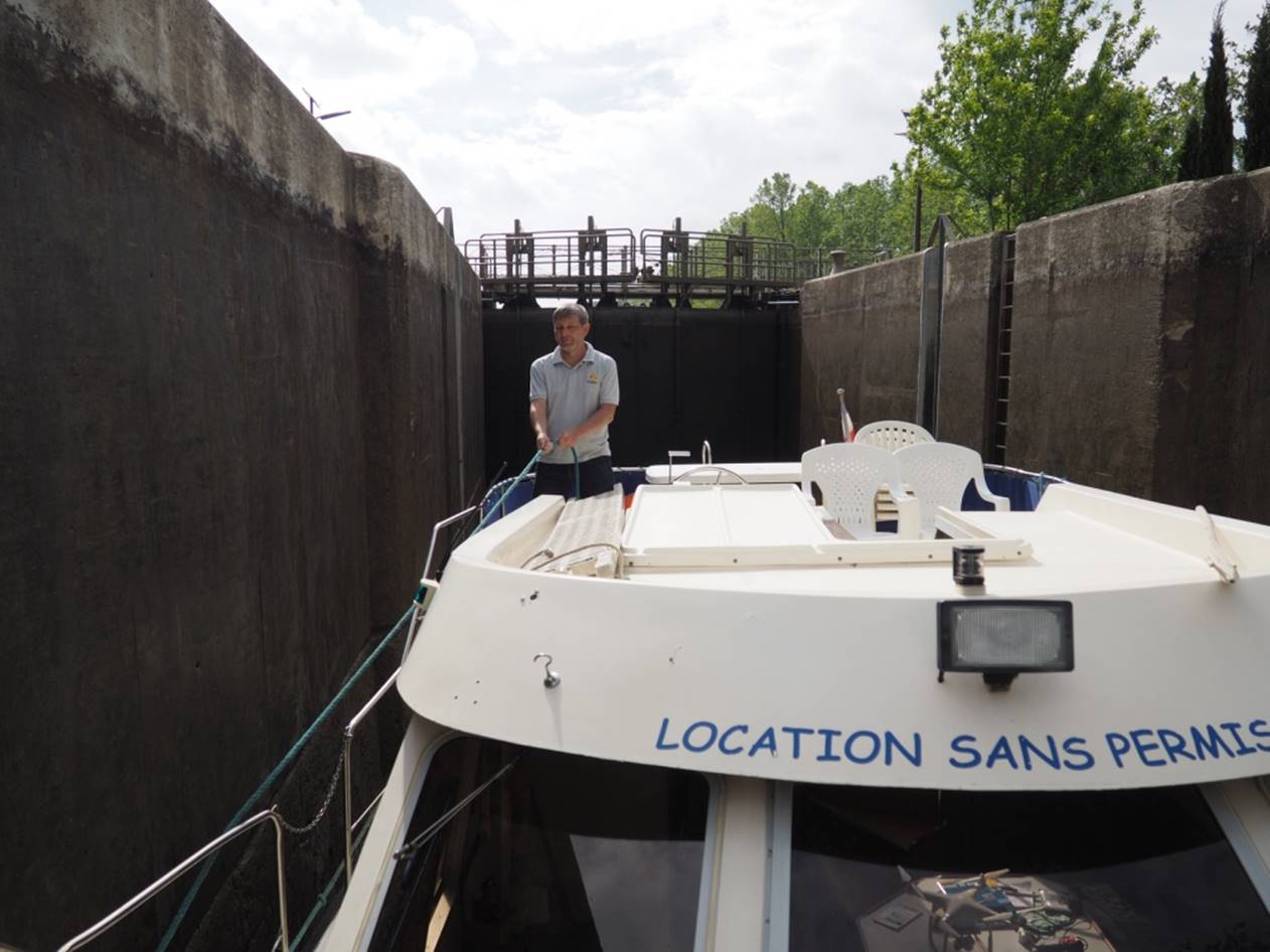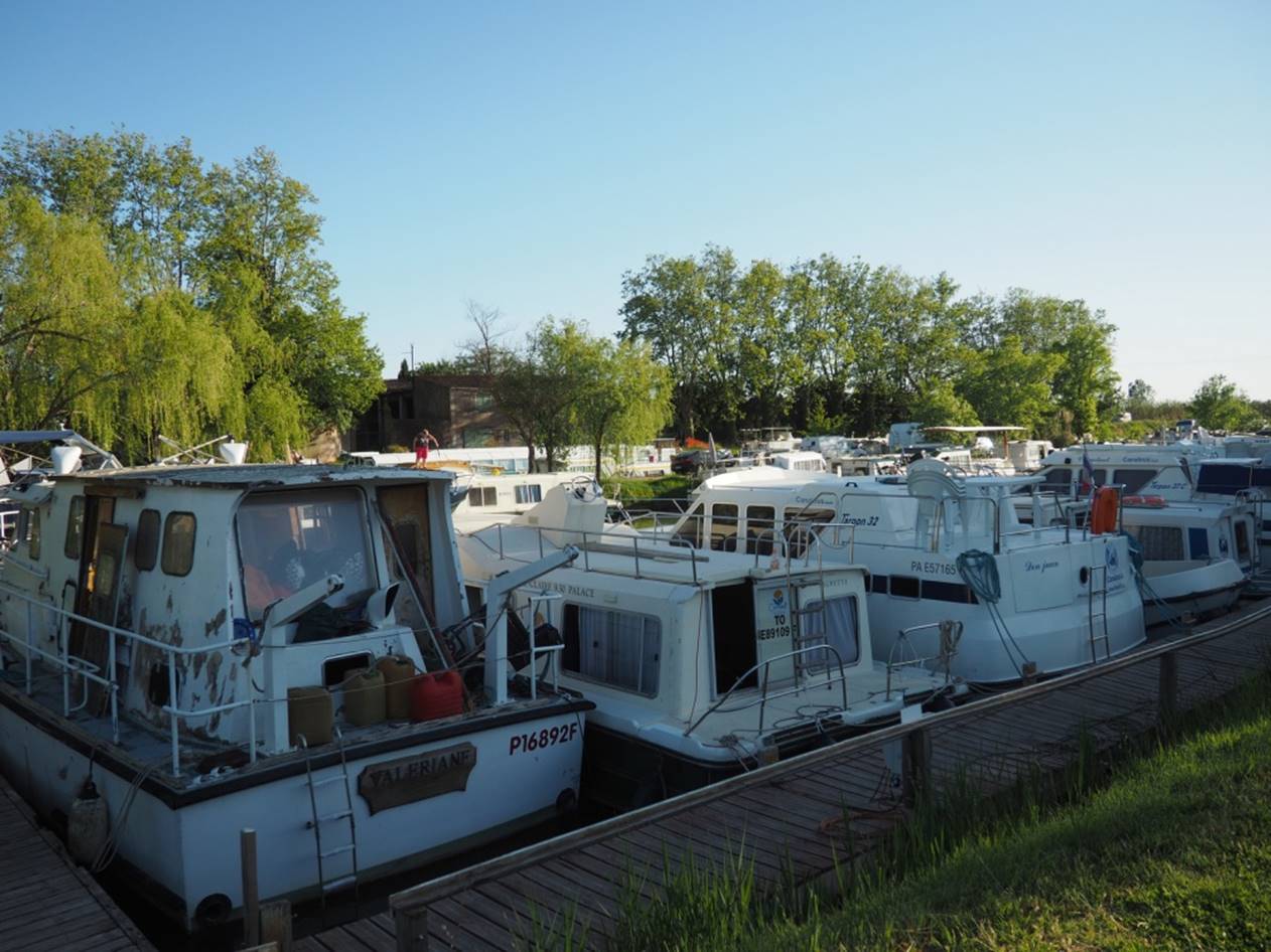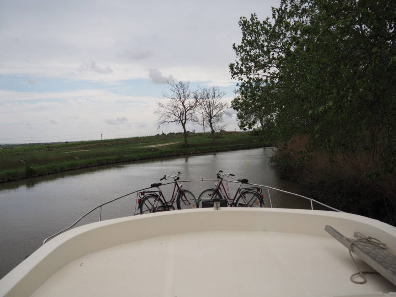 С утра гуляли по маленькому курортному городу Carnon. Город в начале мая совершенно пустой, не сезон.. Вечером получили лодку, прошел инструктаж, немного практики и поплыли (уже сам, лицензии на управление лодкой не нужно) на запад по каналу. Далее был подъемный мост, который поднимают только два раза в день, посему рядом с ним припарковались и переночевали.