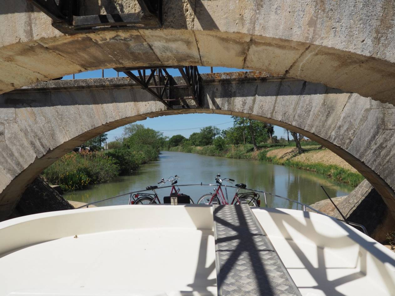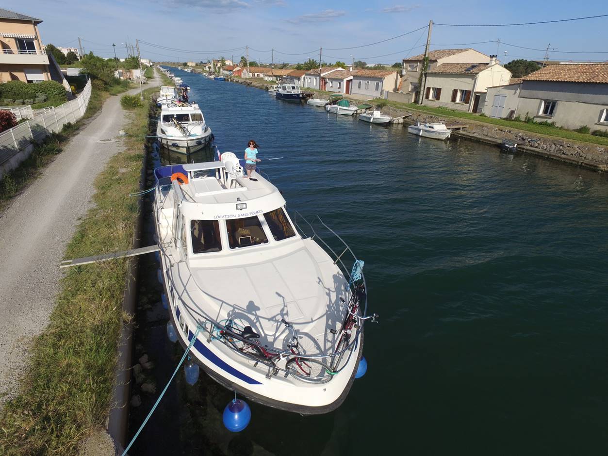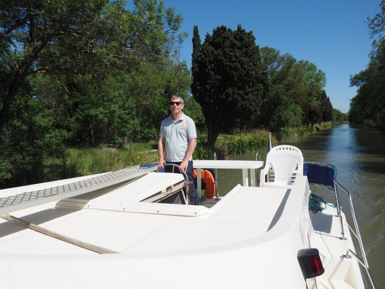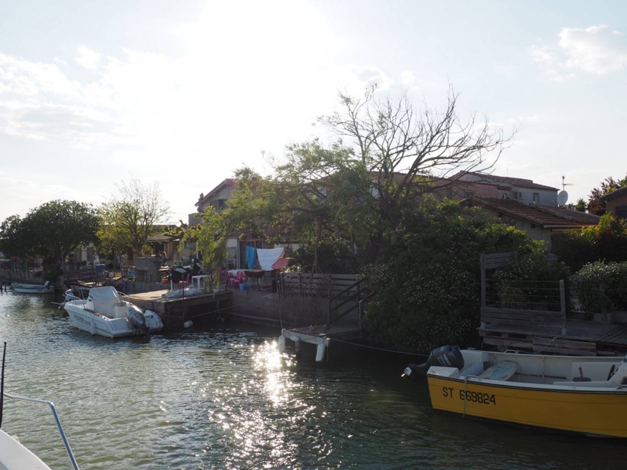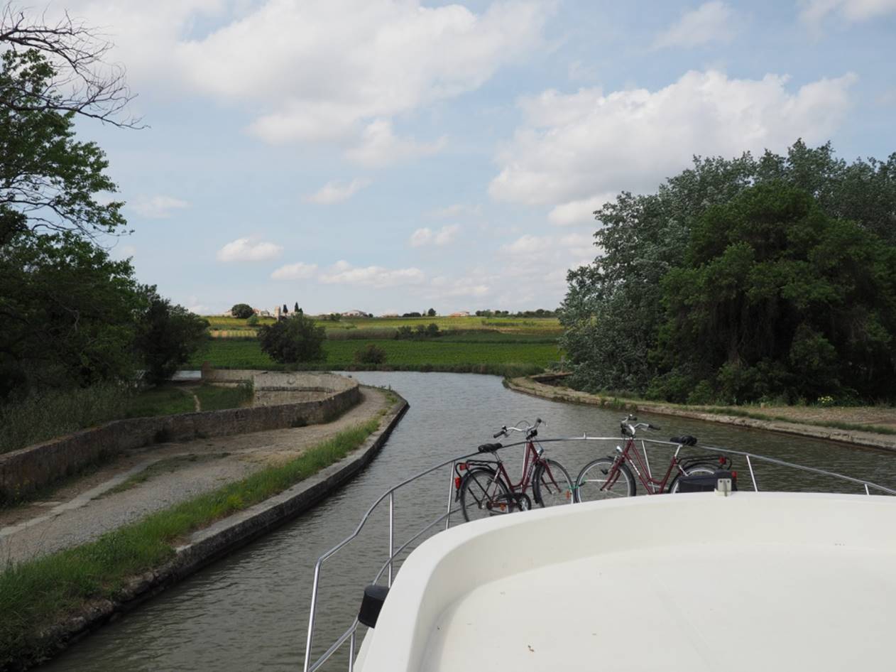 С утра гуляли по маленькому курортному городу Carnon. Город в начале мая совершенно пустой, не сезон.. Вечером получили лодку, прошел инструктаж, немного практики и поплыли (уже сам, лицензии на управление лодкой не нужно) на запад по каналу. Далее был подъемный мост, который поднимают только два раза в день, посему рядом с ним припарковались и переночевали.