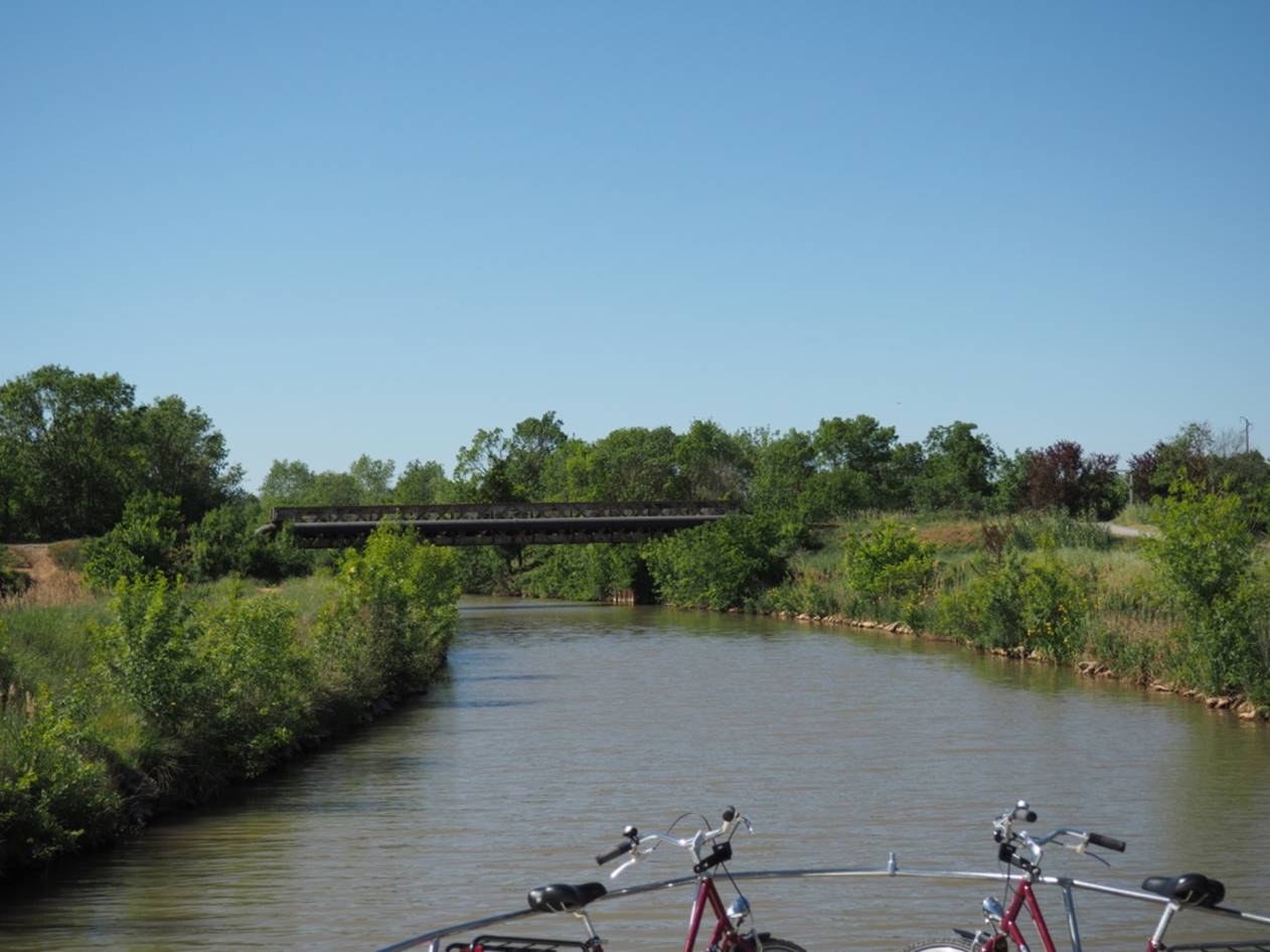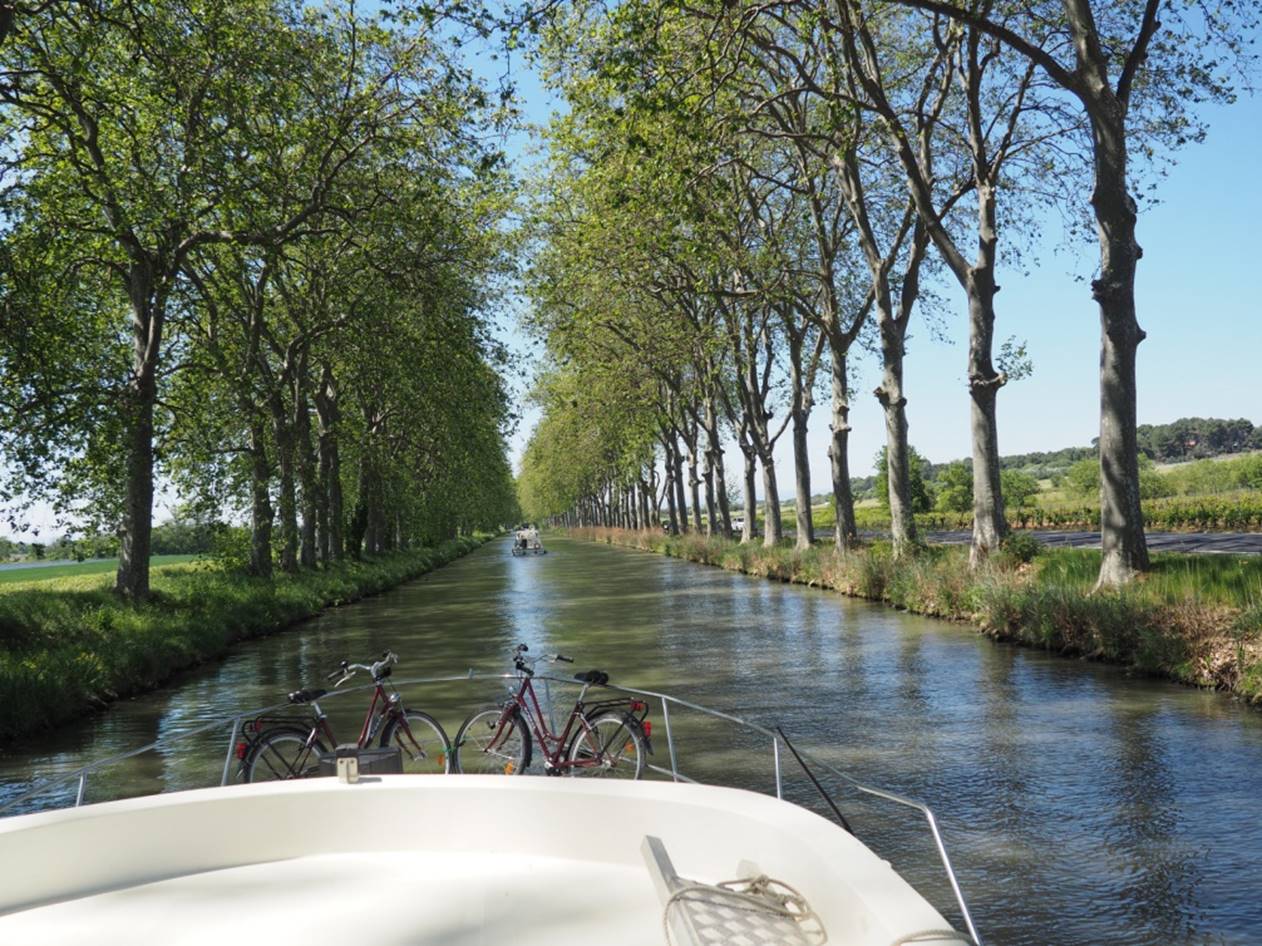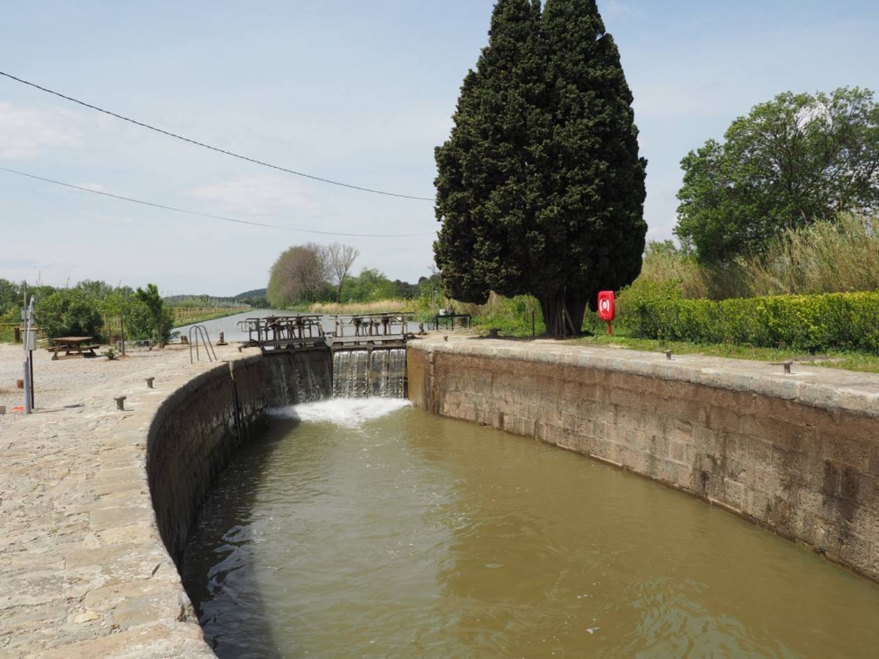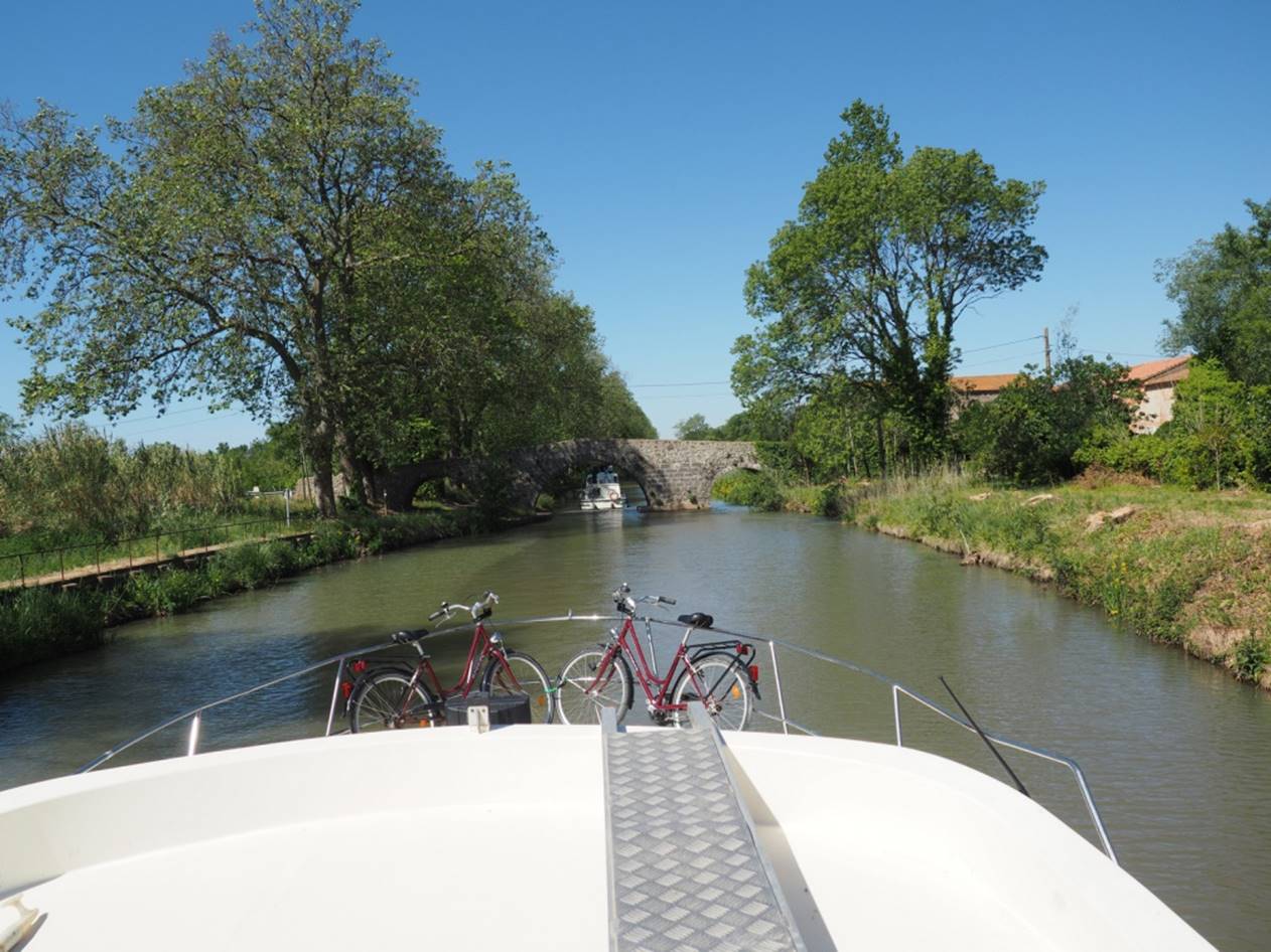 С утра гуляли по маленькому курортному городу Carnon. Город в начале мая совершенно пустой, не сезон.. Вечером получили лодку, прошел инструктаж, немного практики и поплыли (уже сам, лицензии на управление лодкой не нужно) на запад по каналу. Далее был подъемный мост, который поднимают только два раза в день, посему рядом с ним припарковались и переночевали.