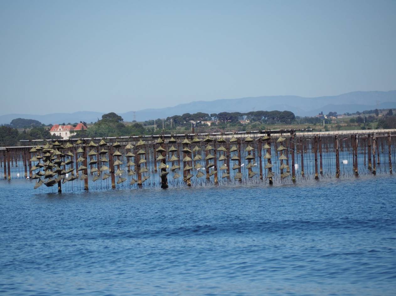 Ровно в 8:30 мост (точнее его автомобильная часть) поднялась, и можно было пройти. Далее по пути был город Сет, докатились до оного на велосипеде. Тут пришлось провести остаток дня, поскольку был сильный ветер, а прохождение озера с устричными фермами на тихоходных лодках в сильный ветер запрещено.