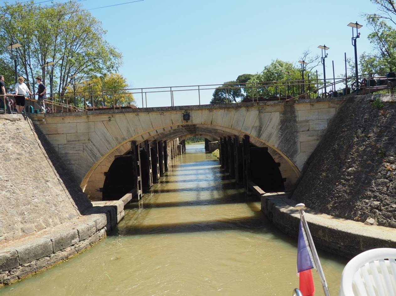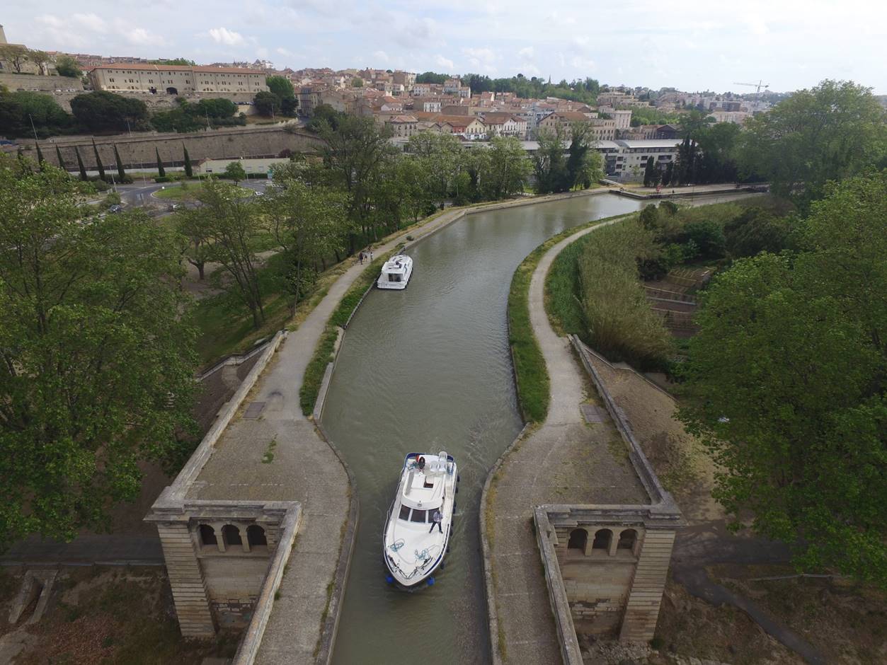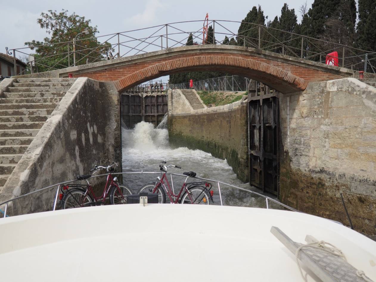 набивается по 4 лодки. Доплыли до города Beziers, там остались на ночь. Сам город не понравился. Мелкие