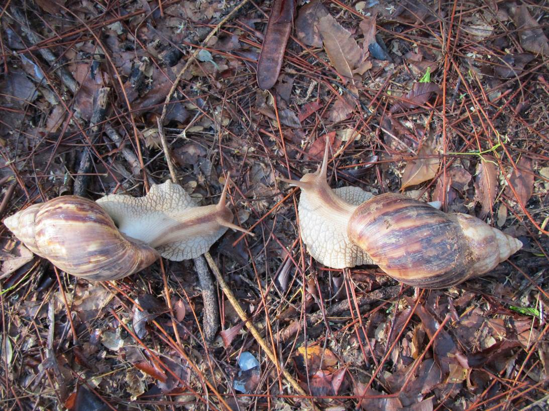 процесс охоты. В парке еще встретили огромных улиток, игуан, тысяченожек,