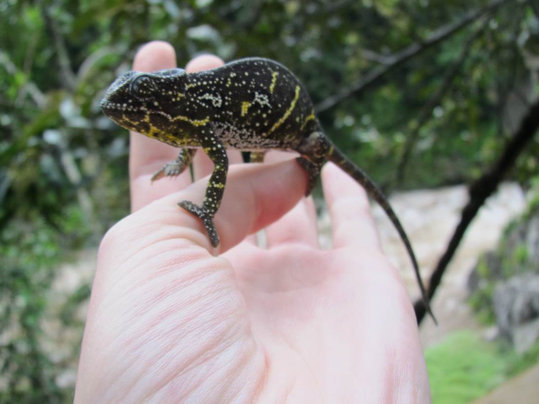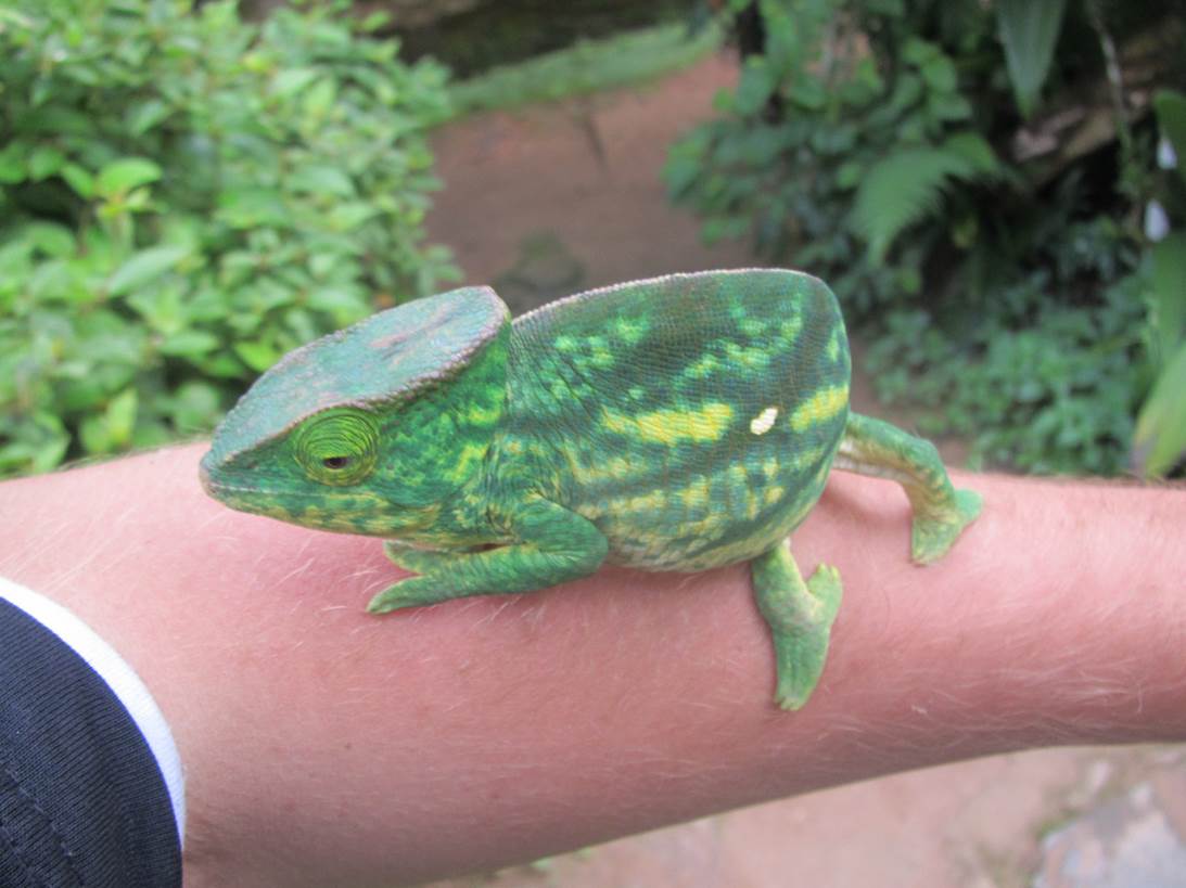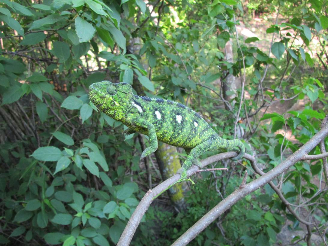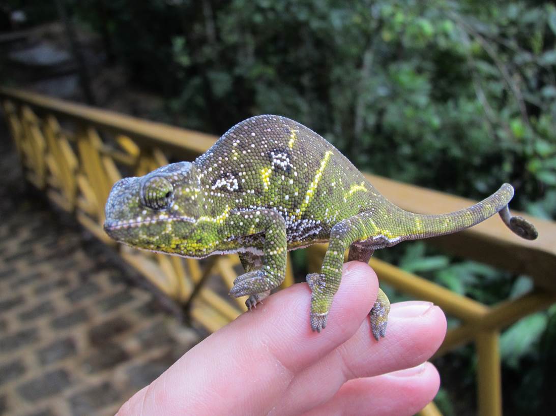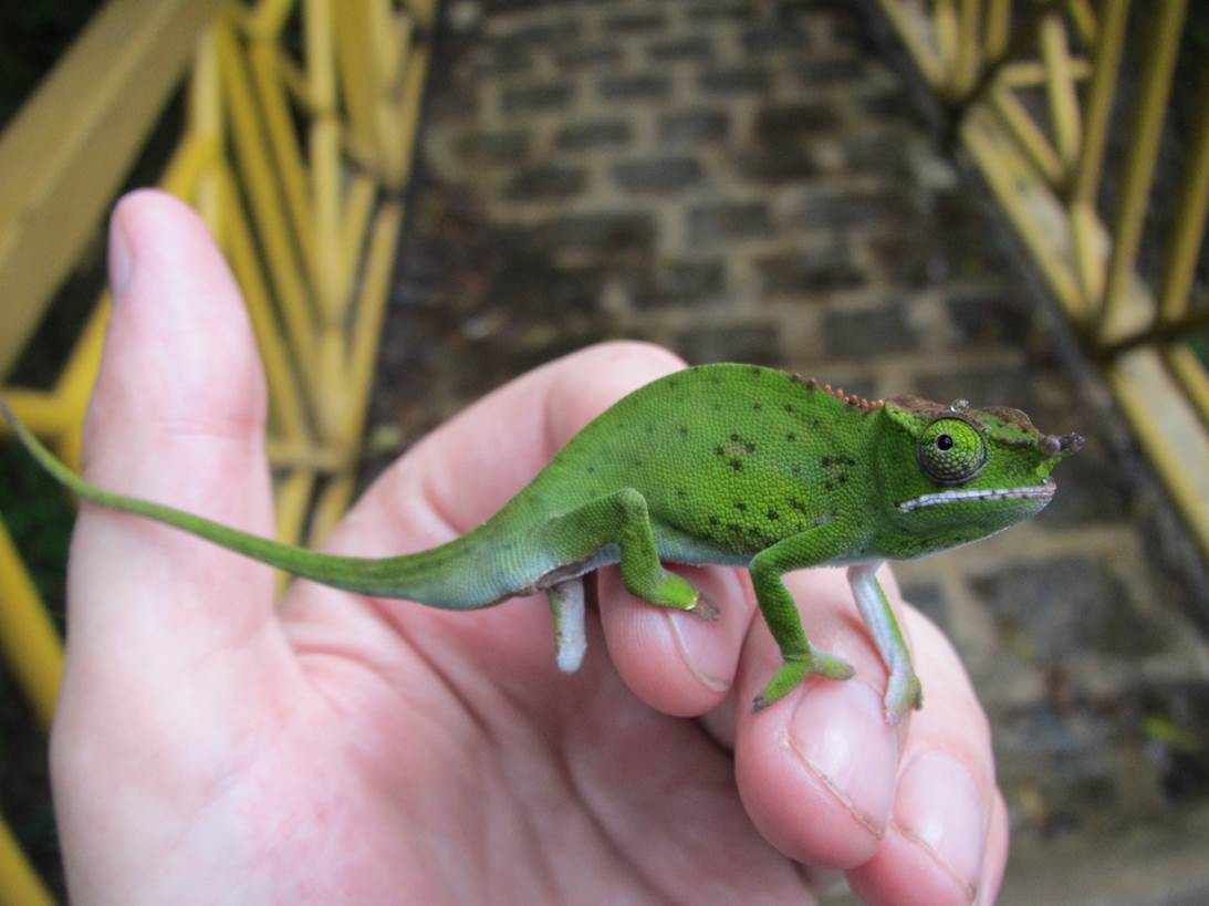 Тут мы встретили самого первого за поездку хамелеона. Он