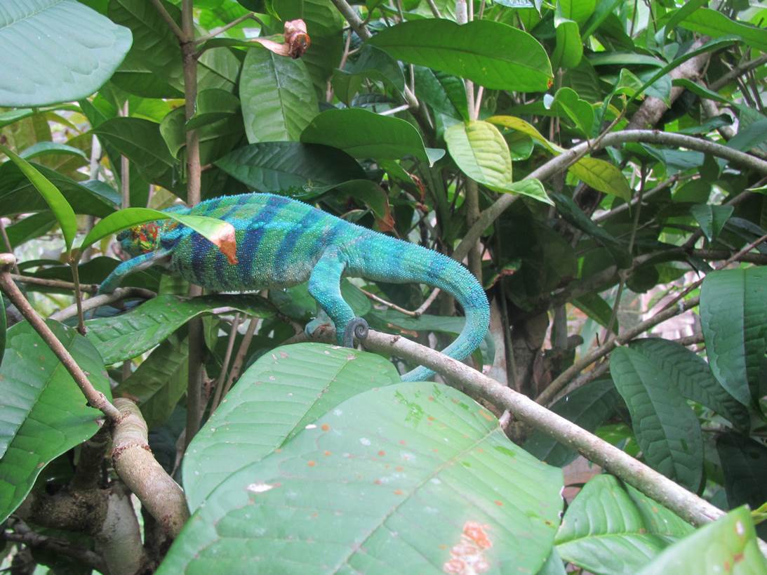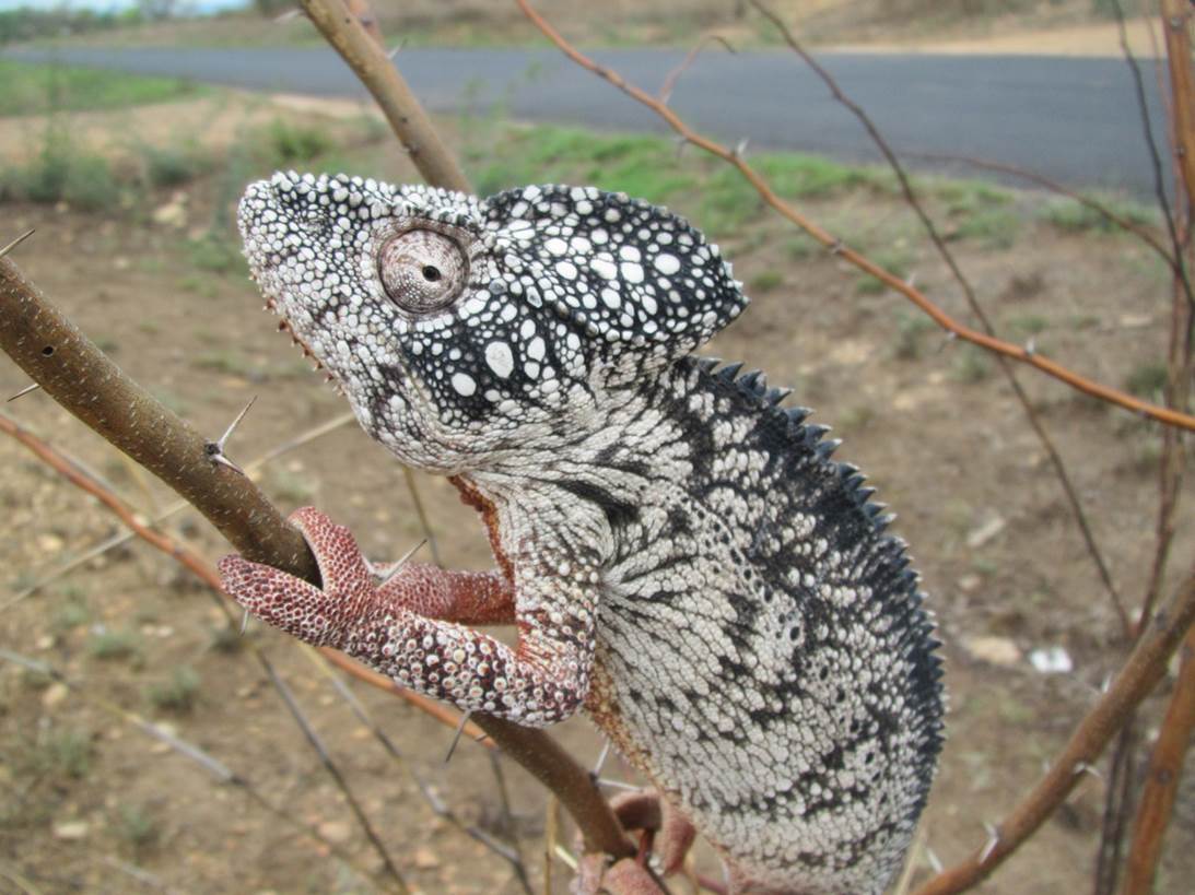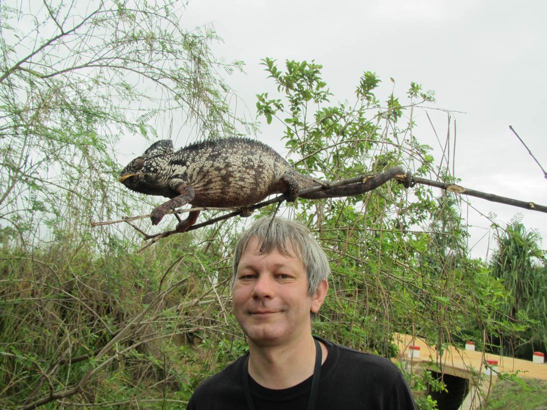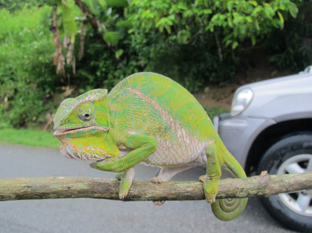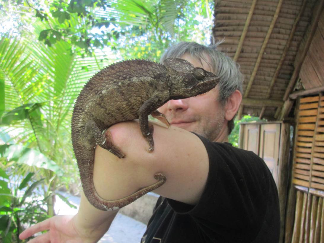 Тут мы встретили самого первого за поездку хамелеона. Он