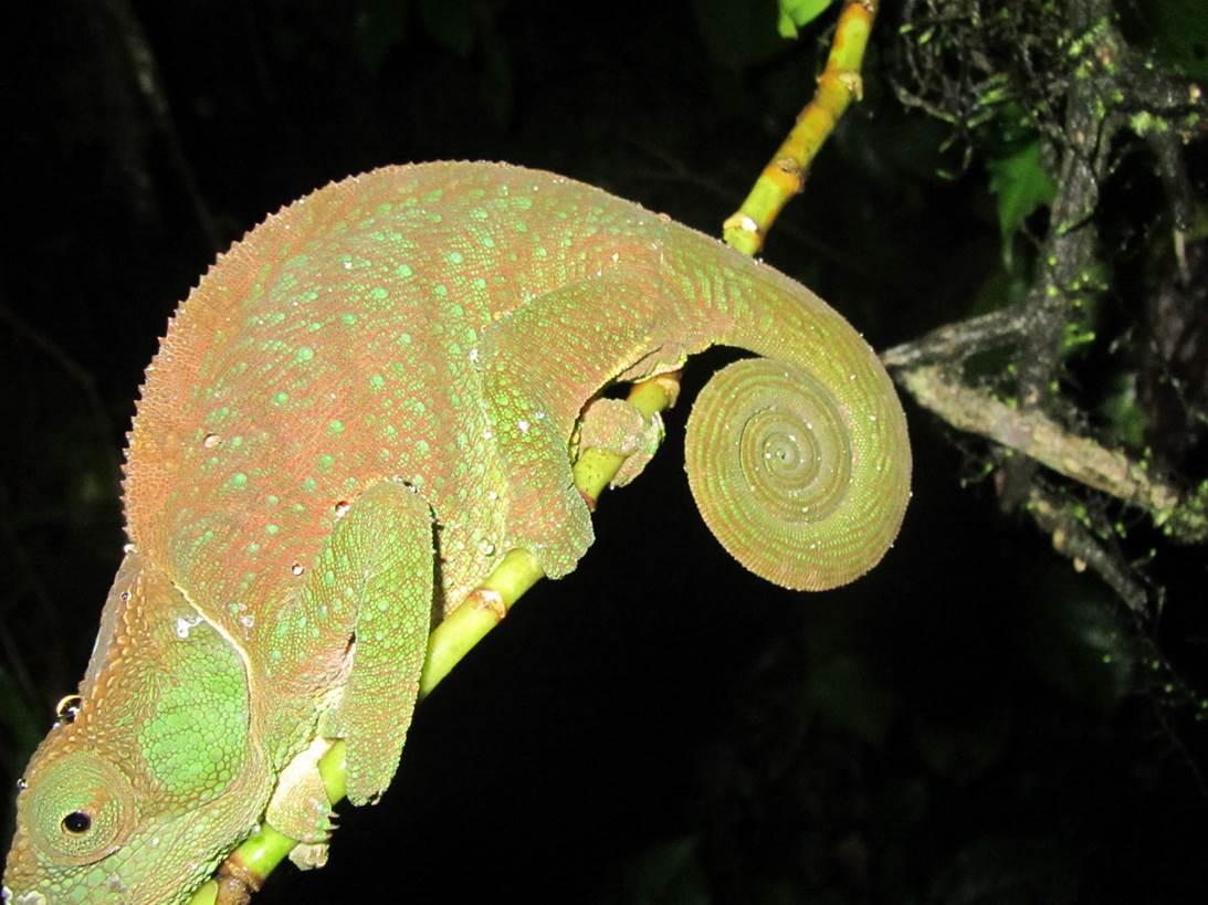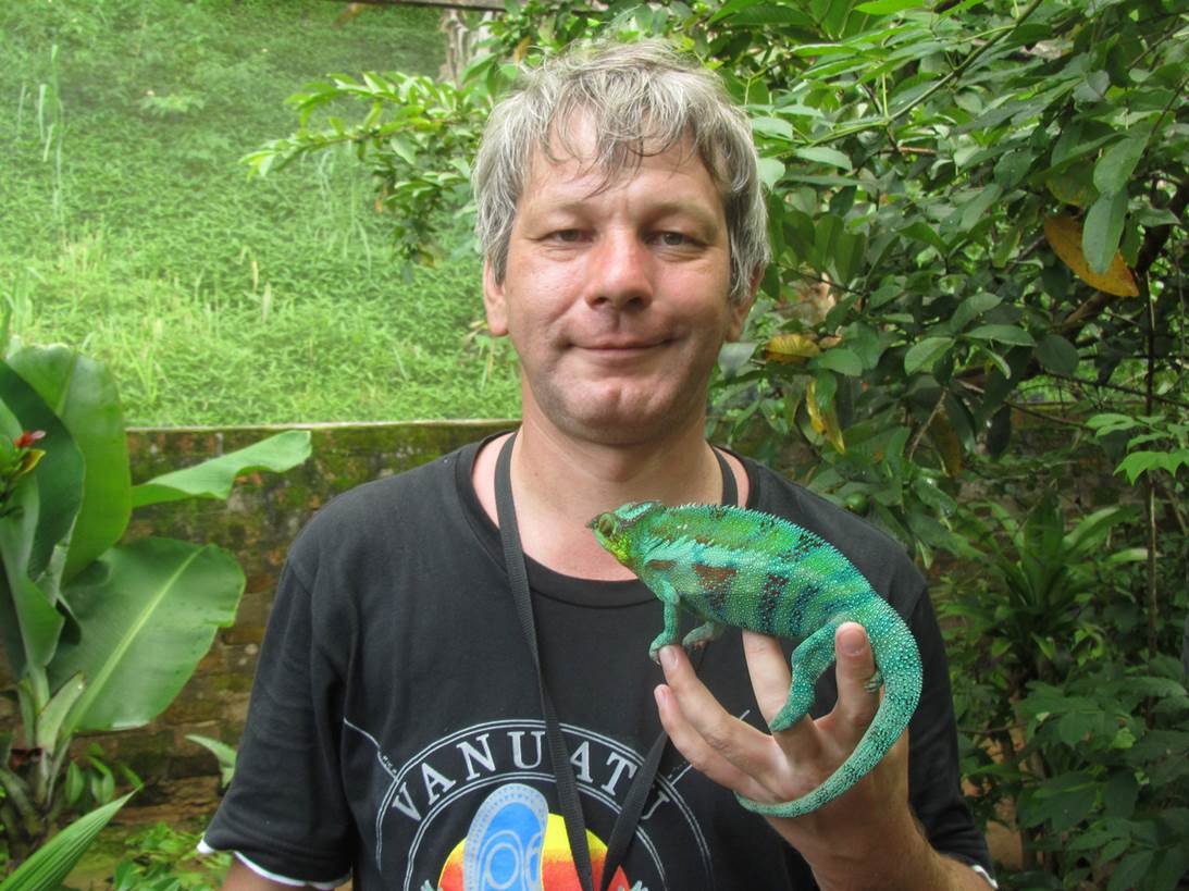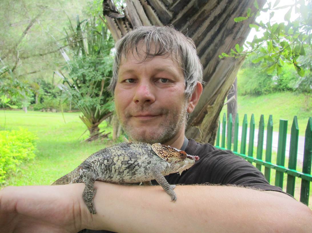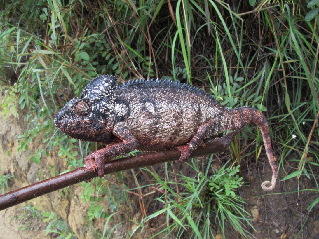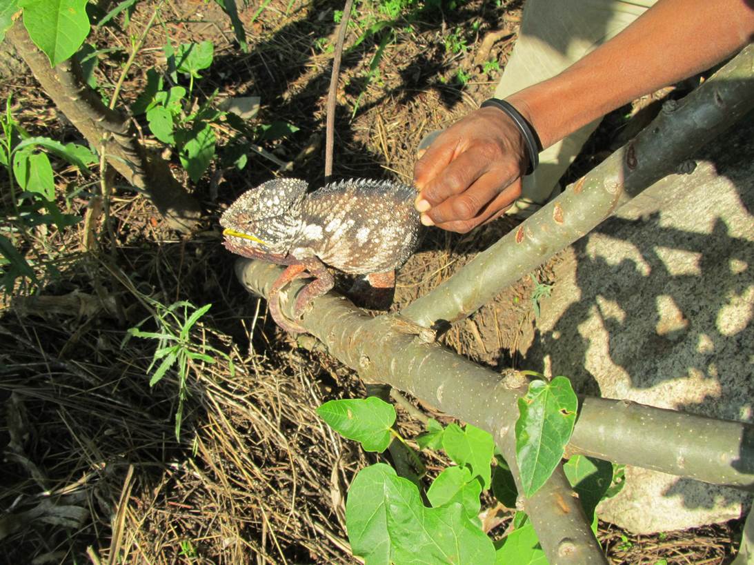 Тут мы встретили самого первого за поездку хамелеона. Он