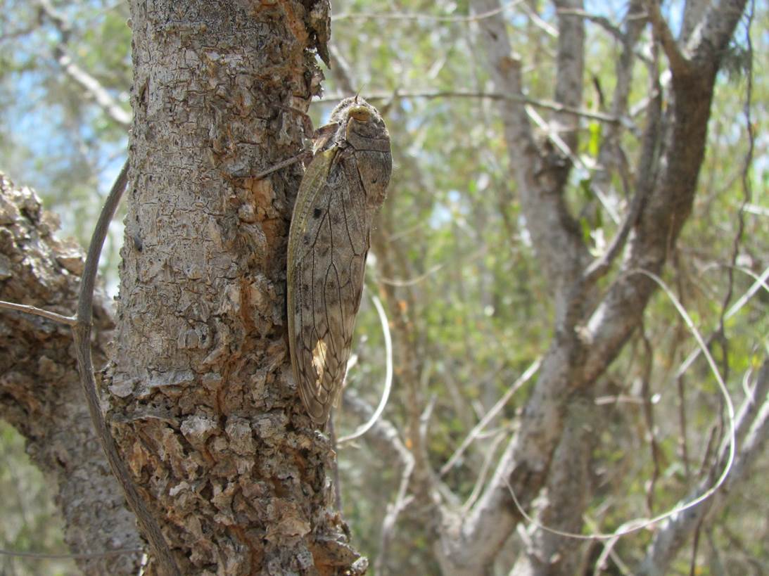 Цикада. Надо сказать, что орут они очень громко. Звуки разные, но чаще напоминает звук ржавой бензопилы. Спать мешали постоянно..