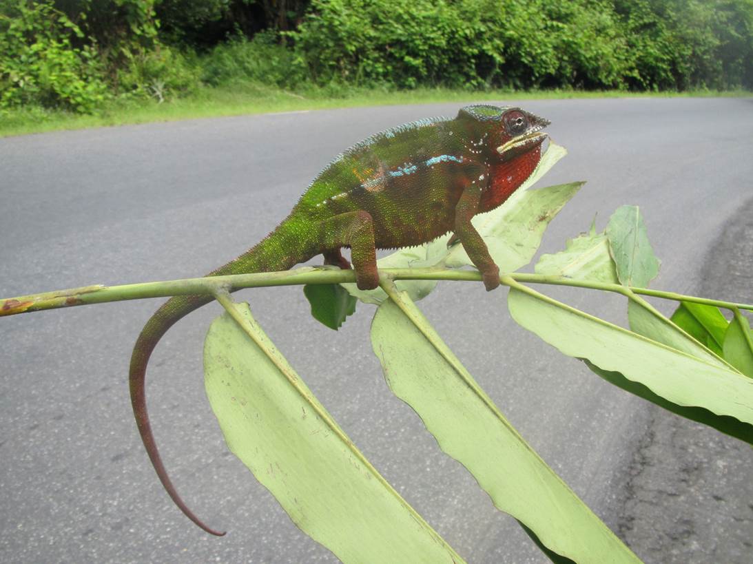 Поехали в сторону Исало. По дороге заехали в парк Зомбитз-Вогибасия, где встретили лемуров, змей.. Опять поймали пару хамелеонов прямо на дороге.
