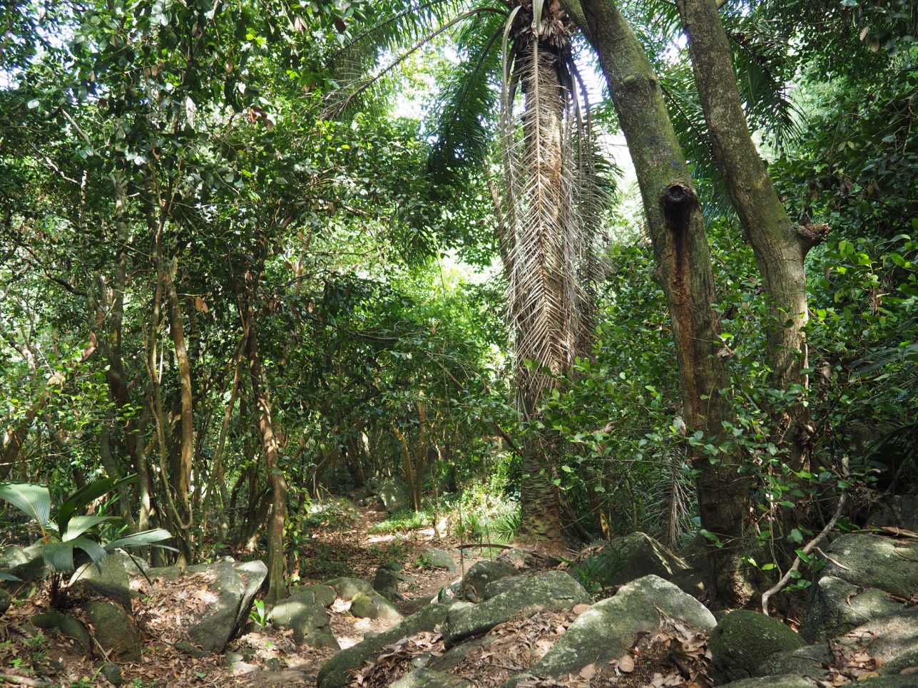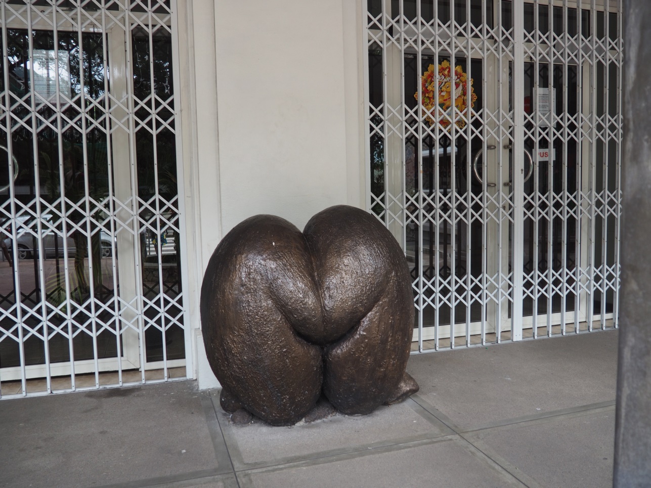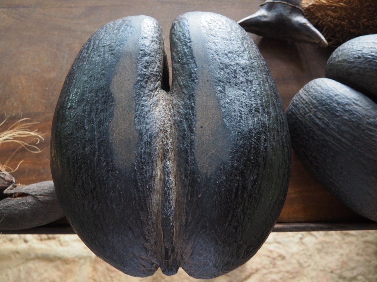 Катались по Praslin.. Заехали в парк, где растут известные эндемики Сейшел – Coco de Mer. Это особый вид кокоса, своеобразной формы. Созревает он много лет.. Кстати, печать в паспорте при въезде в страну сделана в форме этого кокоса.