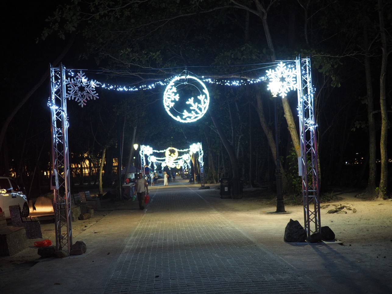 После захода солнца погуляли по пляжу недалеко от отеля и по улице, где все было украшено к Рождеству.