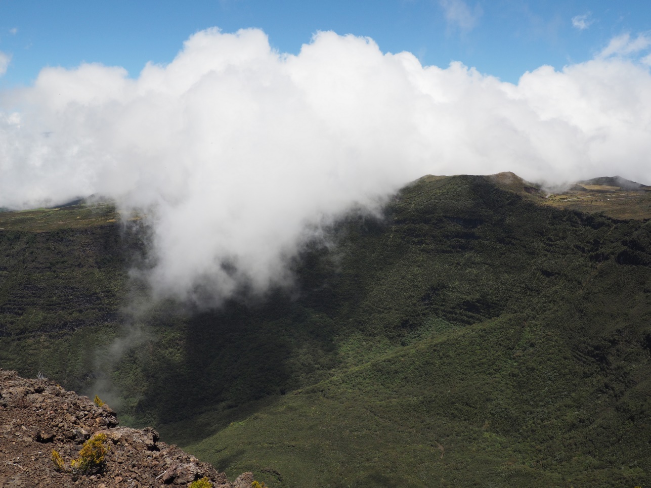 где должен быть очень красивый вид на кратер Mafate, но в это время