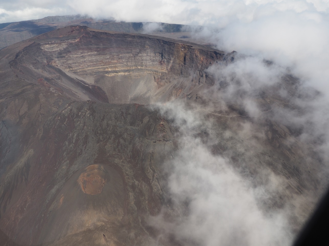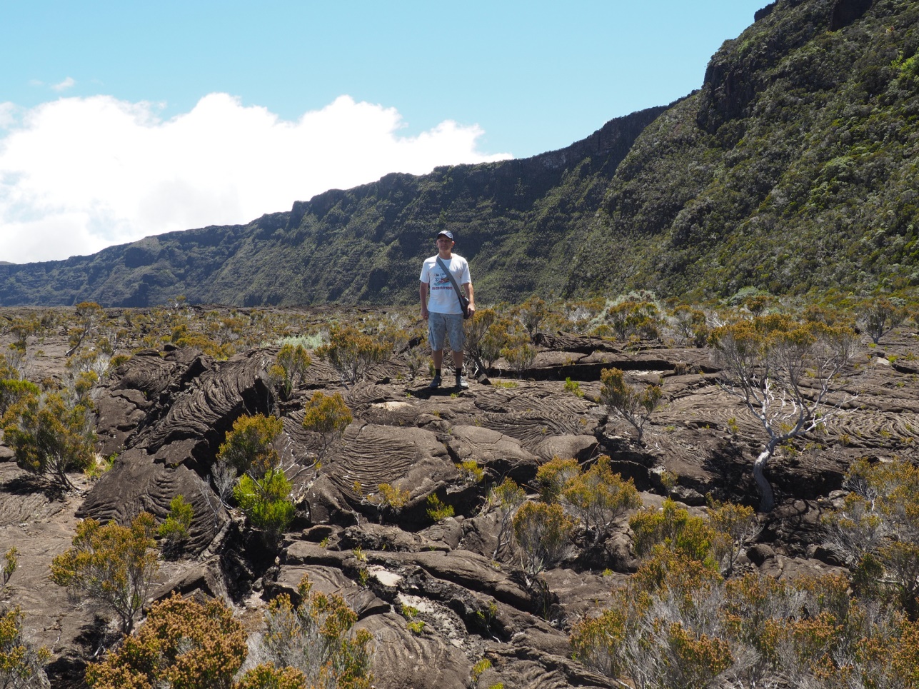 Поехали до Piton de la Fournaise, спустились в кратер.