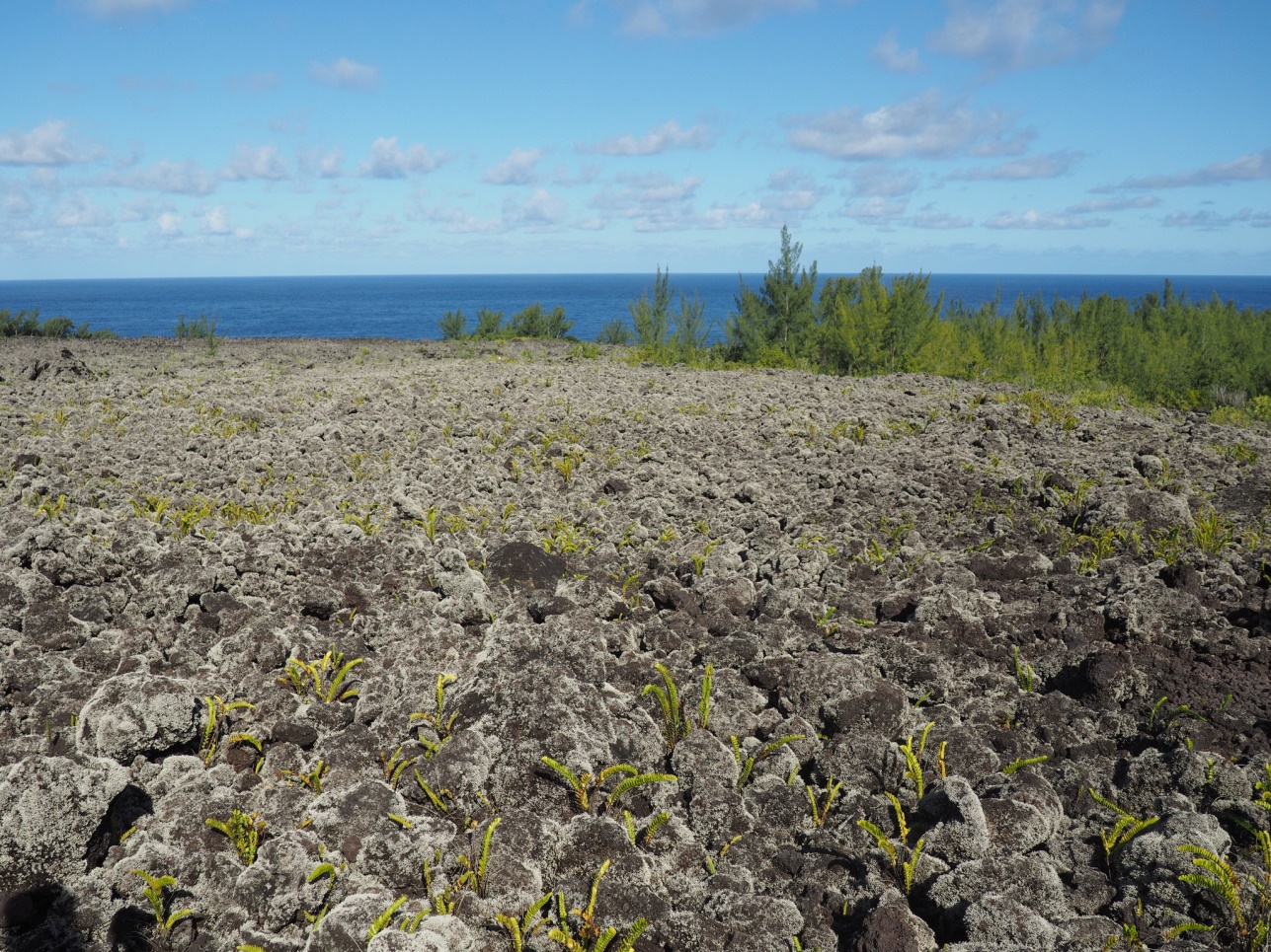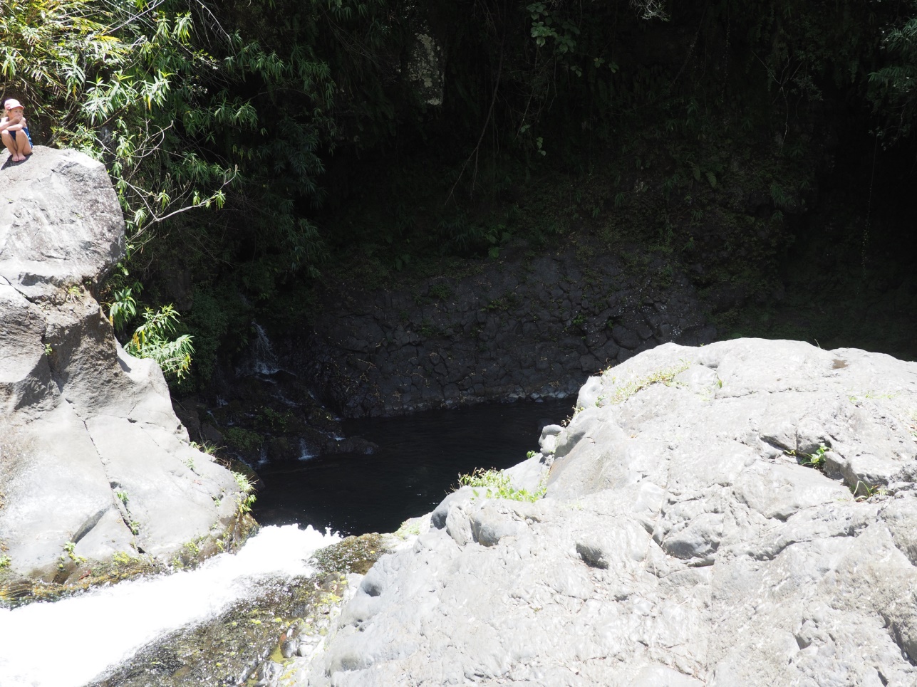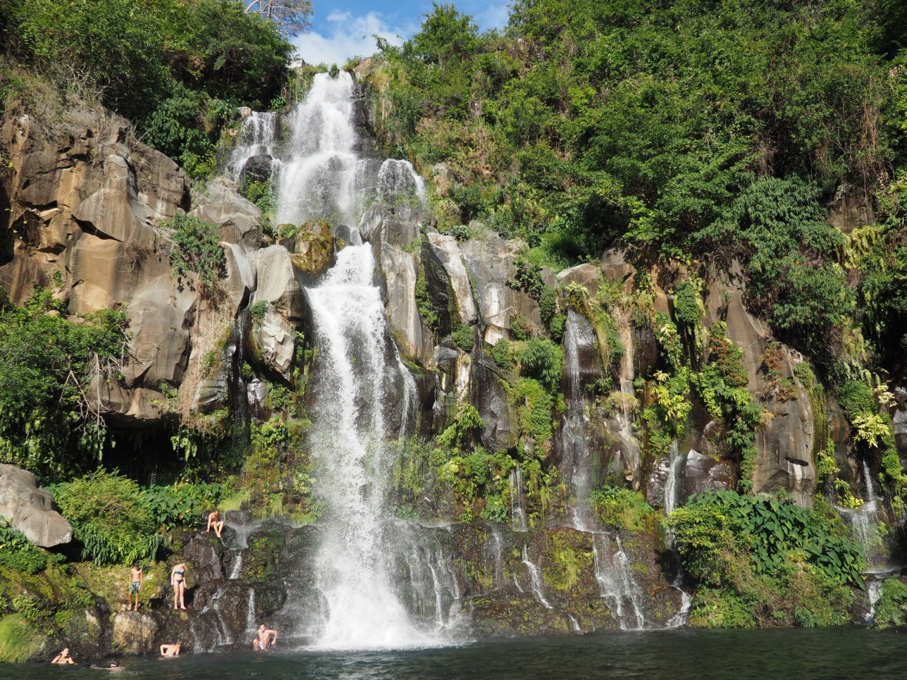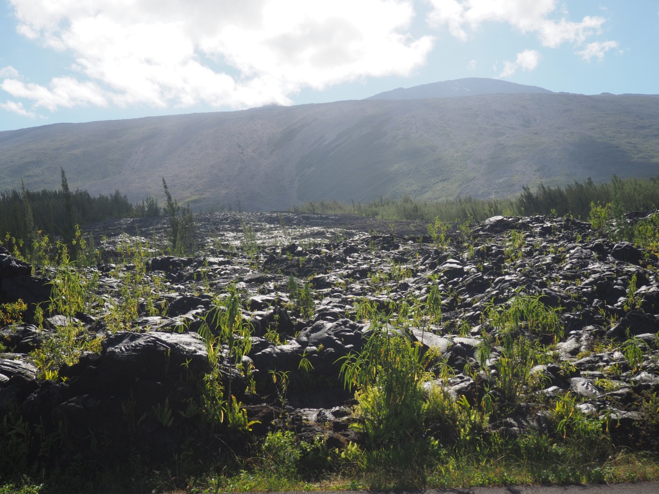 Отправились на Cascade de Grand Galet. Далее на восточную часть острова смотреть лавовые поля разных лет. Каждое подписано, в каком году это случилось. Дорогу, естественно, приходится отстраивать каждый раз заново. Потом полехали в залив с водопадами – Anse de Las Cascades.