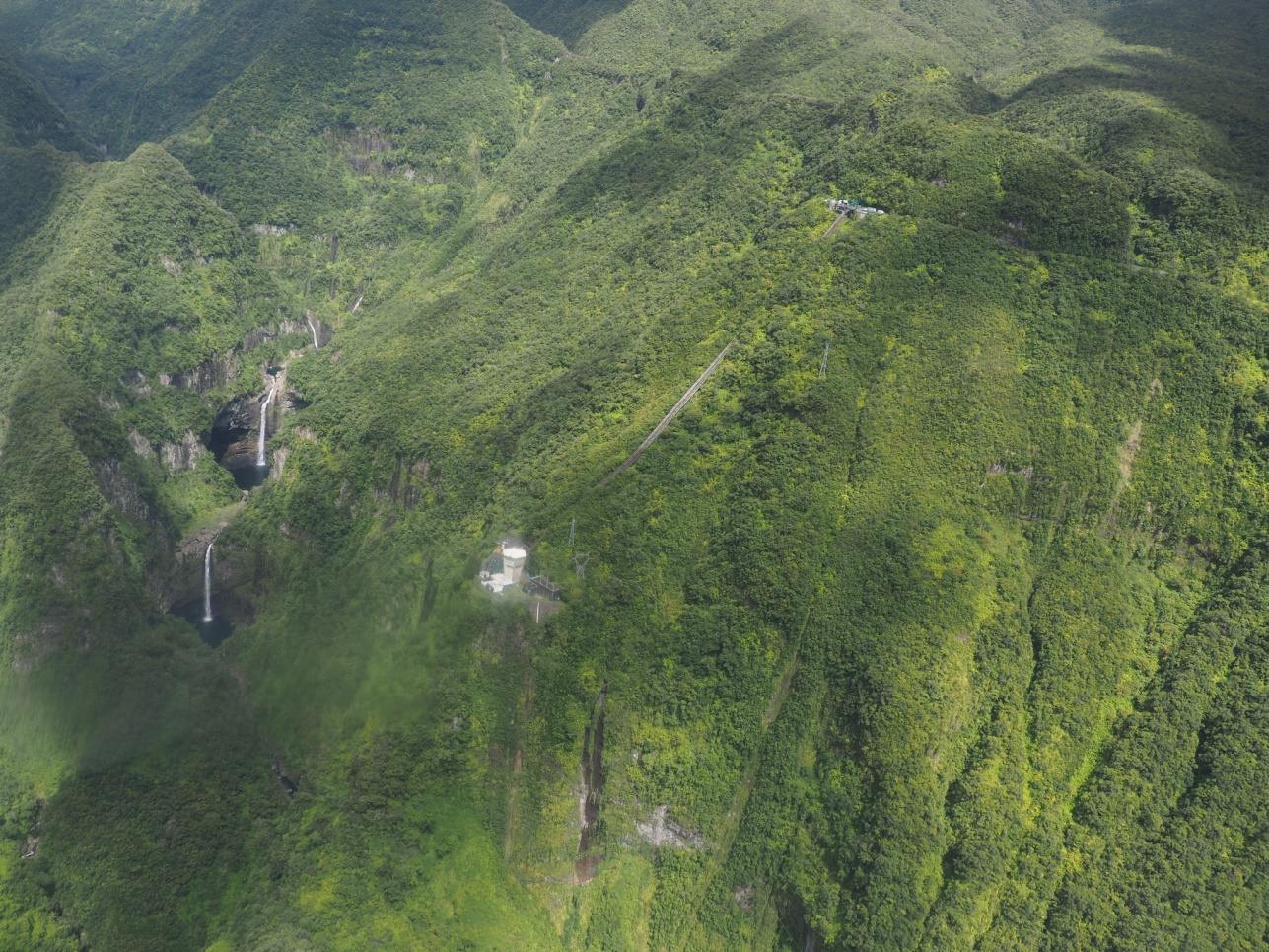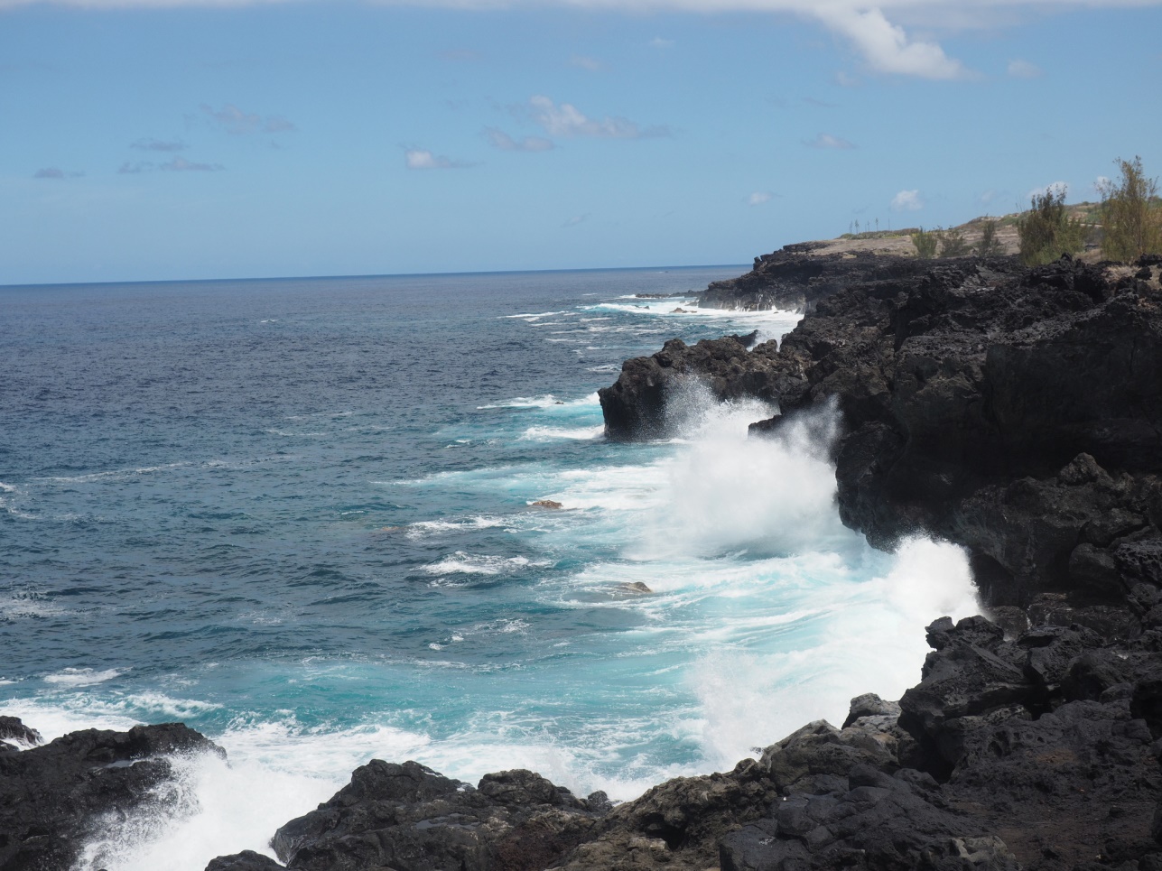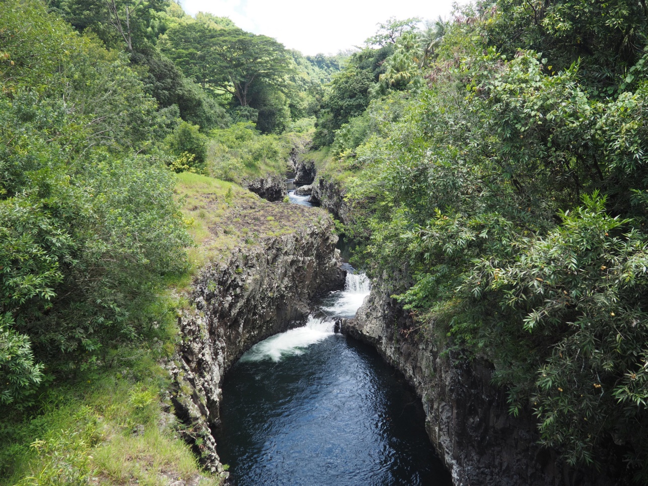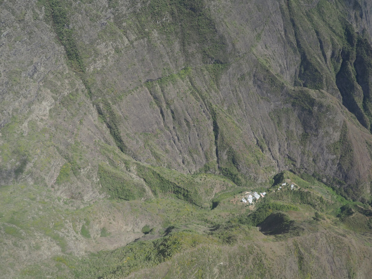 Отправились на Cascade de Grand Galet. Далее на восточную часть острова смотреть лавовые поля разных лет. Каждое подписано, в каком году это случилось. Дорогу, естественно, приходится отстраивать каждый раз заново. Потом полехали в залив с водопадами – Anse de Las Cascades.