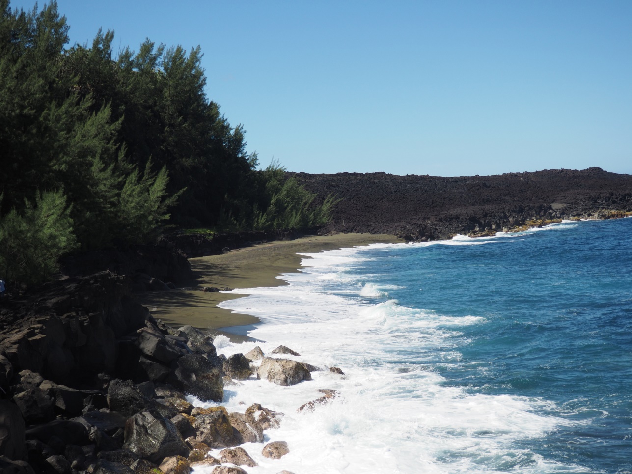 По дороге заехали на пляж с черным песком.