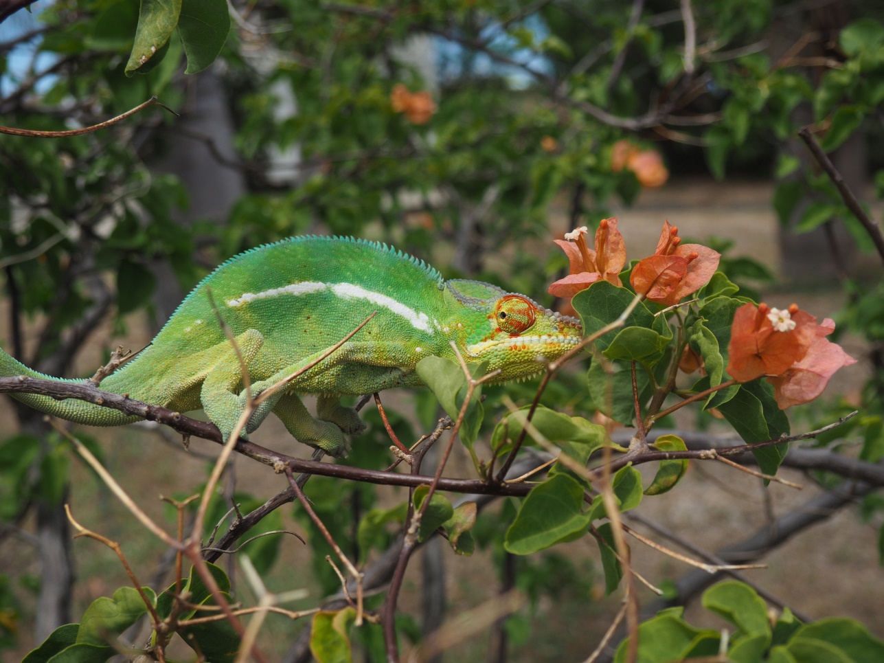 Около вертолетной площадки встретили хамелеона.