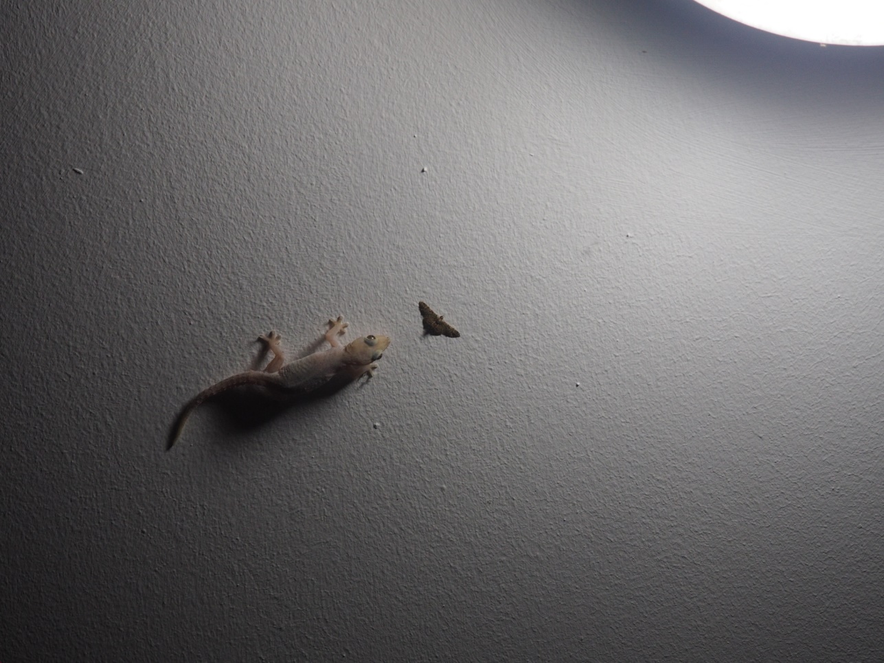 А вечером геккон на потолке охотился за мотыльками.