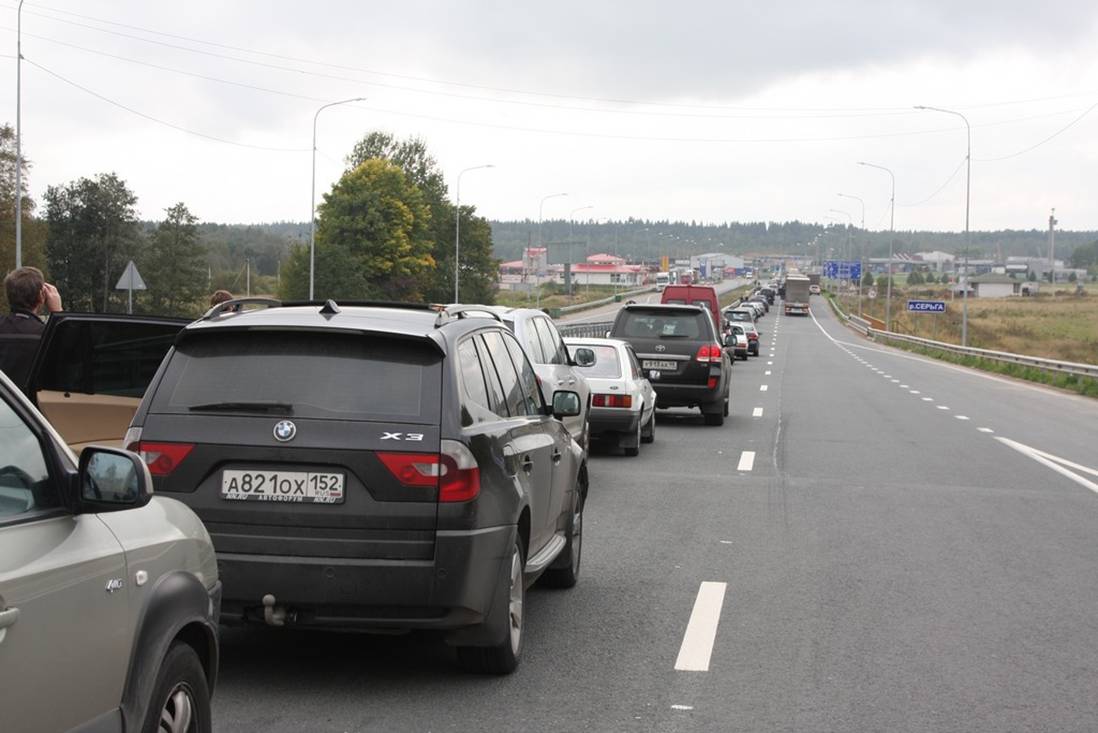 Подъехали к границе с Финляндией. Очередь была приличная,