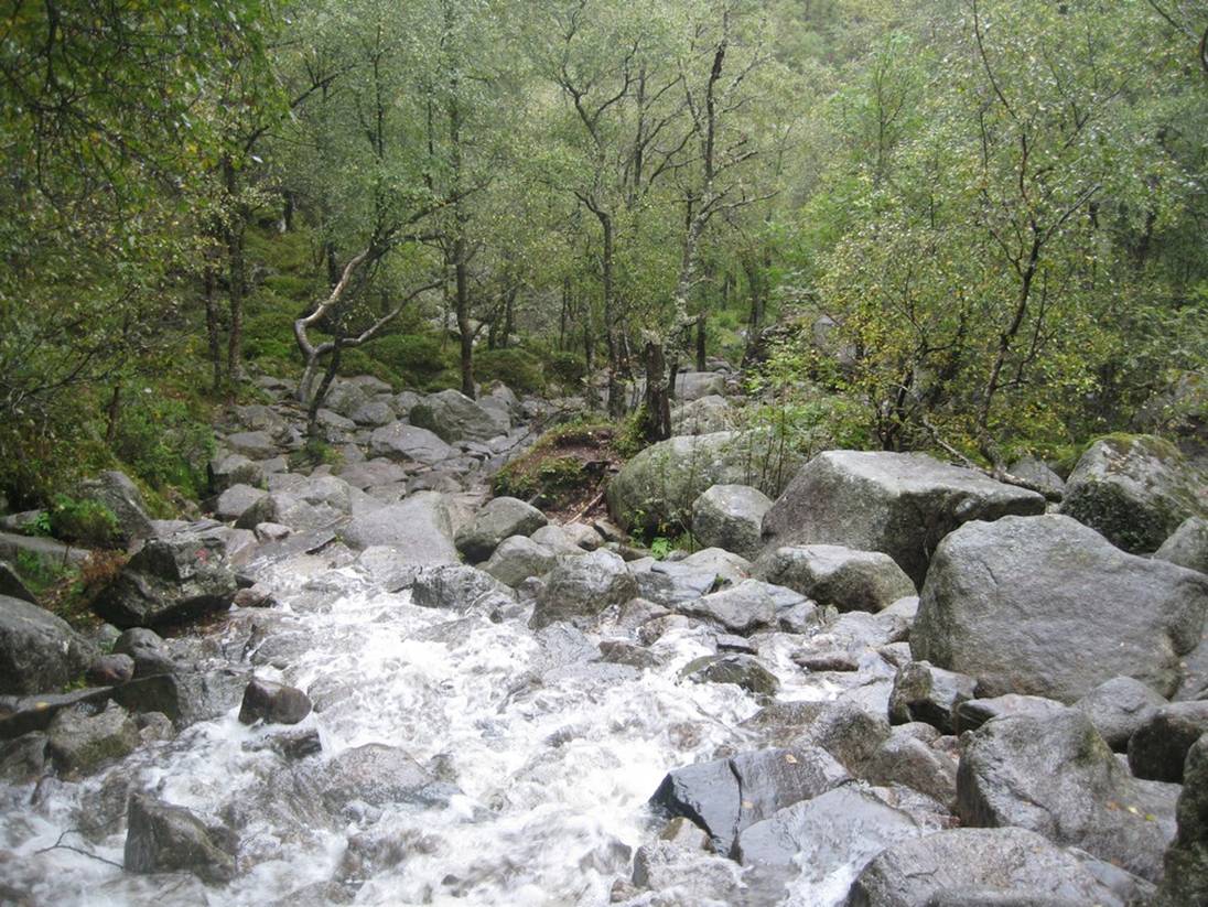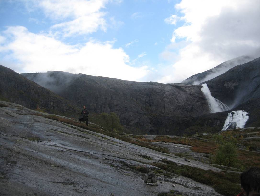 Опять решили пройтись по мало туристическому маршруту из отчета на форуме Винского. На этот раз это была долина Husedalen и 4 водопада. По дороге слегка сбились с тропы и прошли по очень опасному участку. Мокрая наклонная скала, а в метре обрыв. По пути назад нашли правильную дорогу. Наверху виды просто потрясающие. Объелись ягодами J