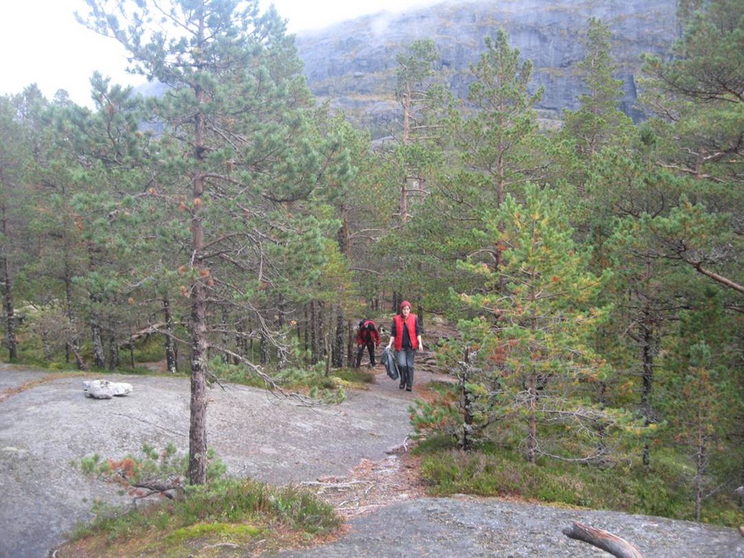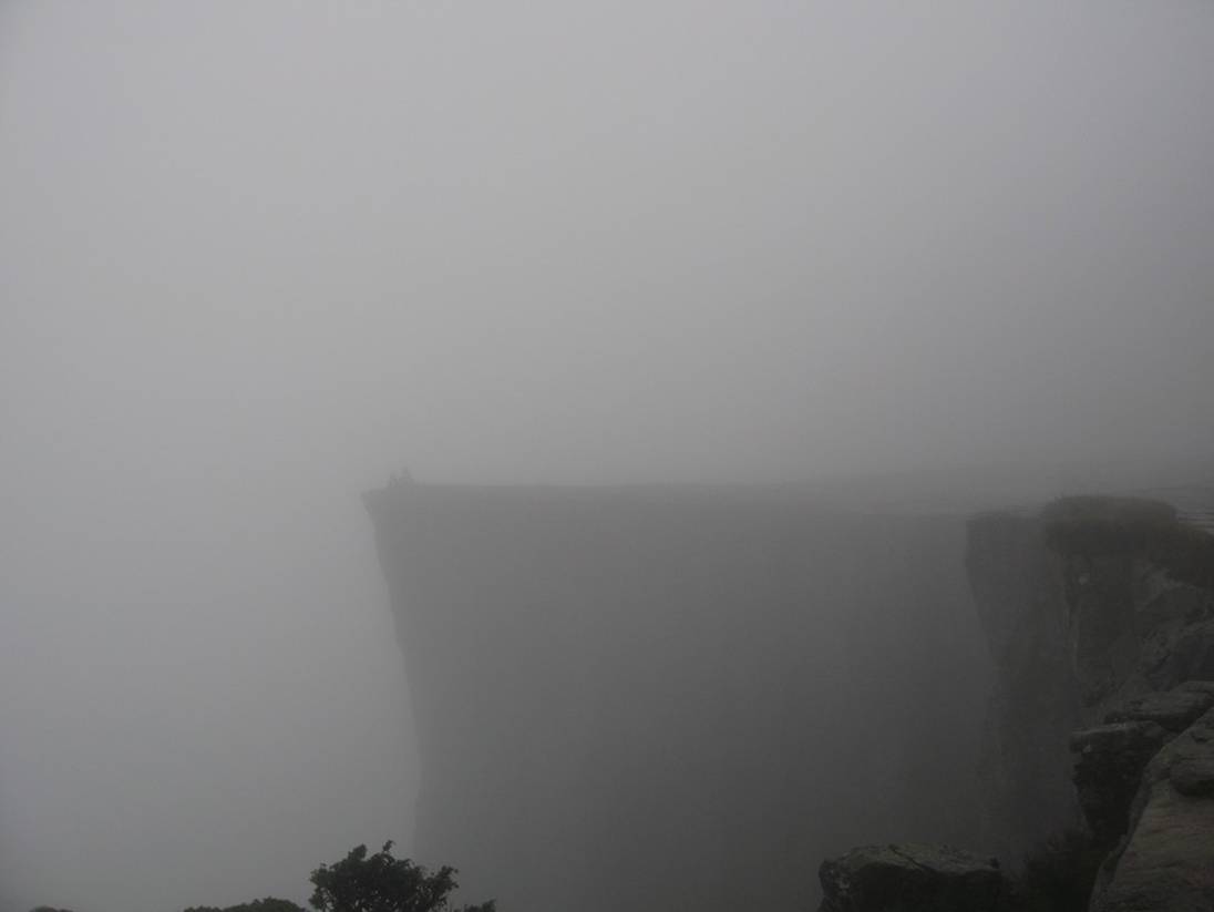 Поднялись на одну из самых известных туристических достопримечательностей – Прекистолен. В этот день было очень облачно, облака были низко, посему все было в тумане, ничего не видно.