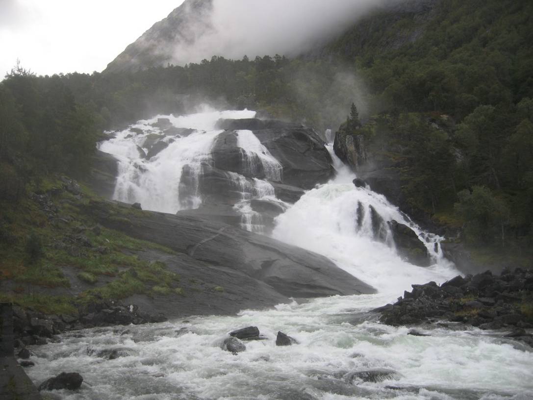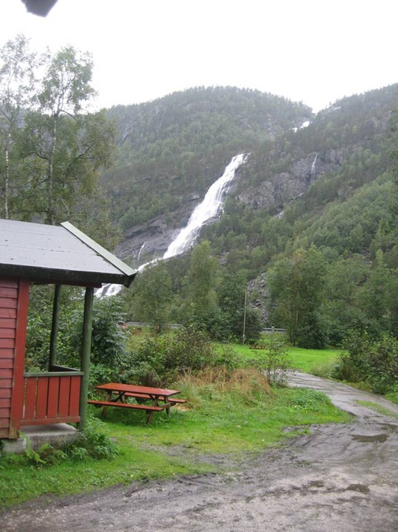 С утра пообщались с работником кемпинга по поводу колеса. Поняли, что до понедельника все равно все магазины закрыты. Поехали опять к водопаду LangFoss, чтоб посмотреть его с другой, интересной и малопосещаемой точки. Что туда можно было пройти, узнали из очень полезного отчета на форуме Винского.