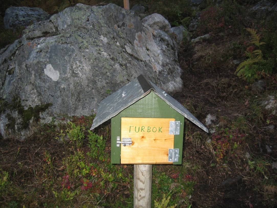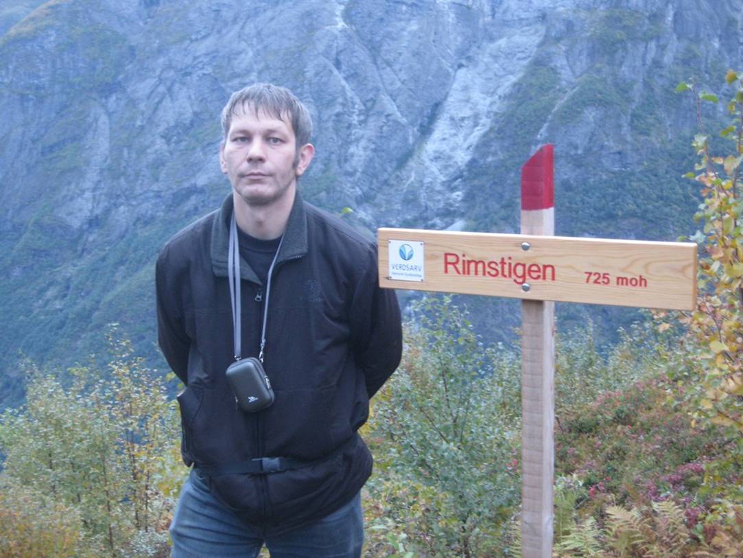 В конце дороги – табличка Rimstigen и ящик с книжкой для записи дошедших. Записался J. Тропа уходила куда-то дальше, прошелся метров 200, далее не пошел – оная трапа уже была практически никак не отмечена – можно было потеряться, а уже темнело. Тем более, что тропа уходила вглубь, и фьорд уже не был виден.