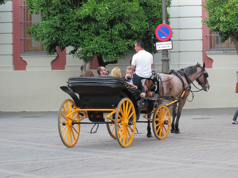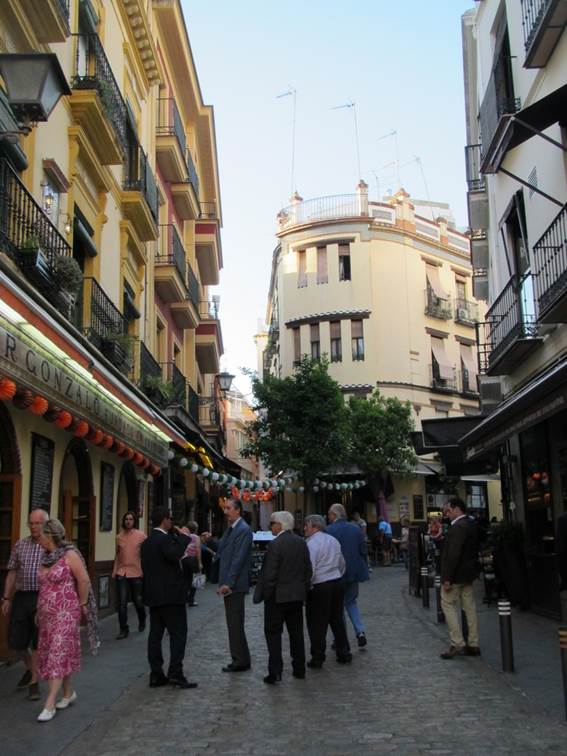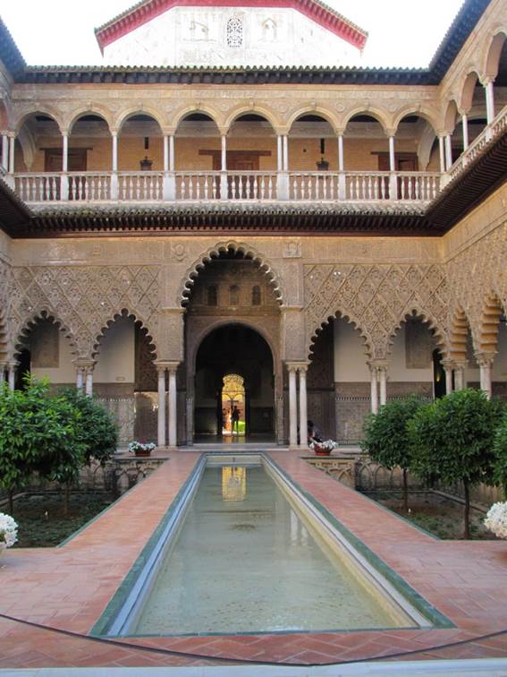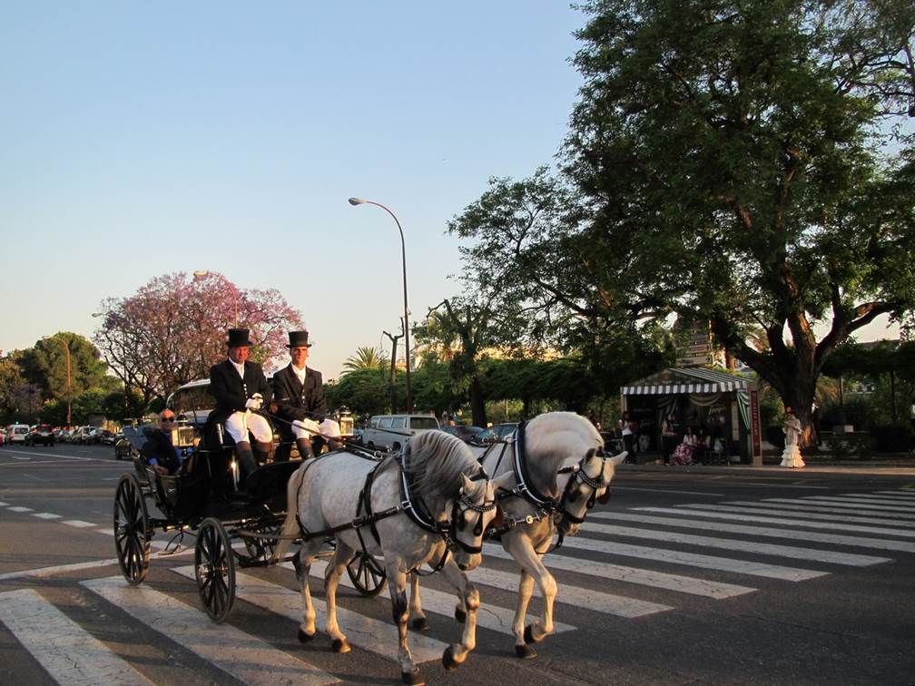 В городок El Rocio. Судя по всему, в городе часто проводятся какие-то мероприятия и праздники, но мы попали в затишье, городок почти вымер. У каждого дома и кафешек есть стоянки для лошадей -) Потом в Севилью. Там в Альказар с его садами и прогулка по вечернему городу.. Был какой-то праздник, все по улицам ходили наряженные.