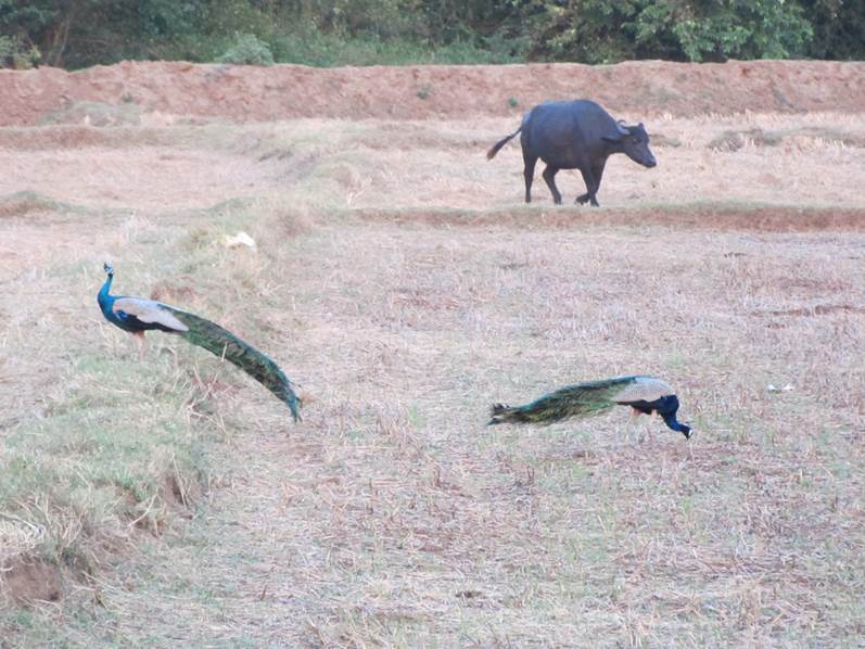 количествах пасутся павлины. Как куры. Так же видел маленьких хамелеончиков, быков, зеленых попугаев стаями..