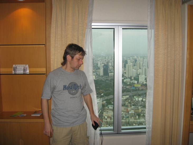 Вернулись в отель, как обычно проехались на лифтах с пересадкой (первый лифт идет только до рецепшна (рецепшн на 18-м этаже. Ниже автостоянка), а второй от рецепшна выше. Лифты очень шустрые.. 2-3 этажа в секунду примерно. Сходили попили пива в ресторане на 84-м, вроде, этаже с отличным видом на ночной Бангкок. Вечером решили сходить на пинг-понг шоу. Что это – лучше сами найдите в инете. Чего там только деффки не делают.. Фотографировать там, естественно, нельзя.