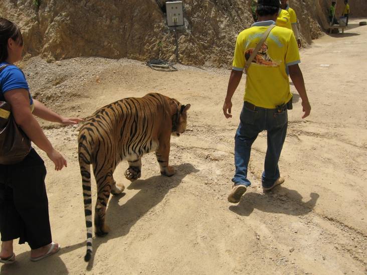 котором, собственно, с ними “общаются” туристы. Выглядит так – ведут тигра, а