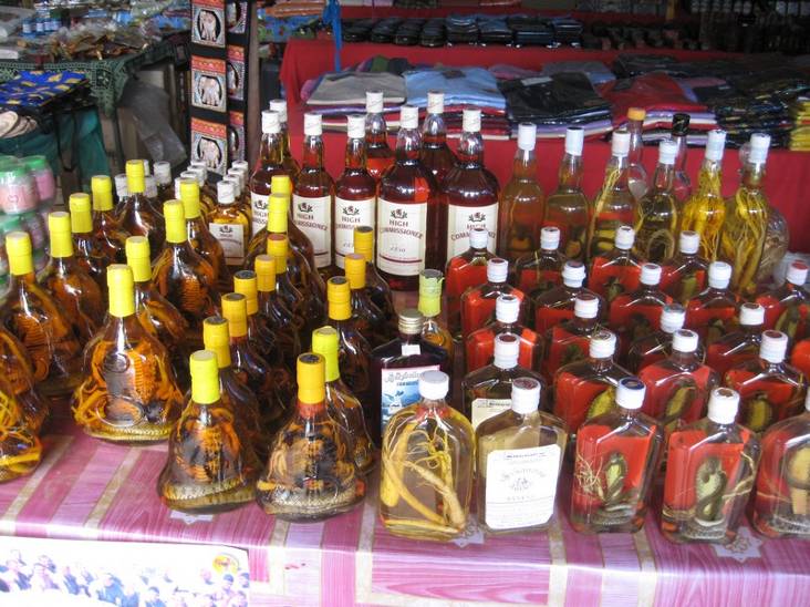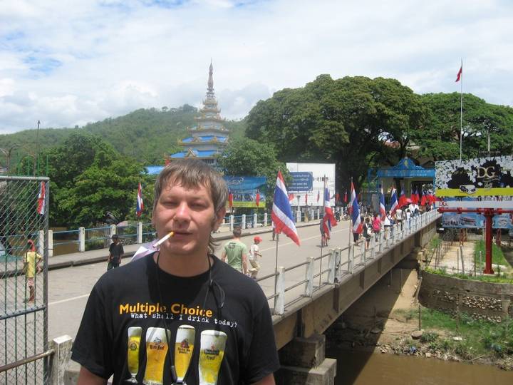 Да, вечером мы узнали, что почти сразу, как мы оттуда уехали, на Мьянму обрушился ураган. Он, конечно, до того места, где мы были, не дошел, но все же. Далее поездка на золотой треугольник (где сходятся три страны – Таиланд, Мьянма, Лаос). Славится тем, что ранее там были огромные плантации мака. Сходили в музей опиума.. Далее отправились к реке – границе с Лаосом. Съездили в Лаос. Не совсем в страну, а на берегу реки там что-то, типа рынка. Никаких паспортных контролей, только сбор за въезд. Купили настойку, в которой змеи и скорпионы. Говорят, полезно J