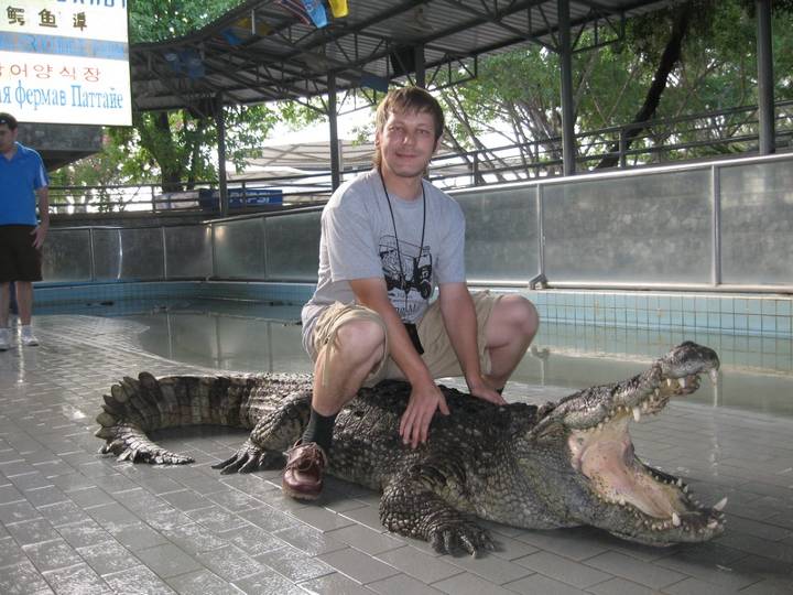 Сфотографировались, сидя на крокодиле. Страшно, но не так, как с тиграми. J