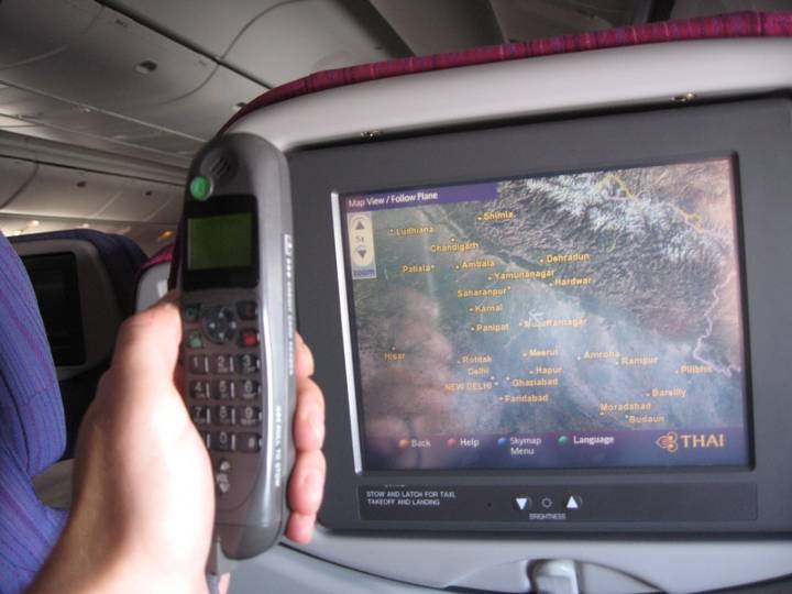 Самолет обратно достался более новый – у каждого кресла телевизор с кучей каналов, фильмов, музыки, камерой вида спереди самолета, карта + снимок со спутника наподобие гугл мапс с указанием текущего месторасположения самолета. Проверил по своему GPS – все правильно показывает J